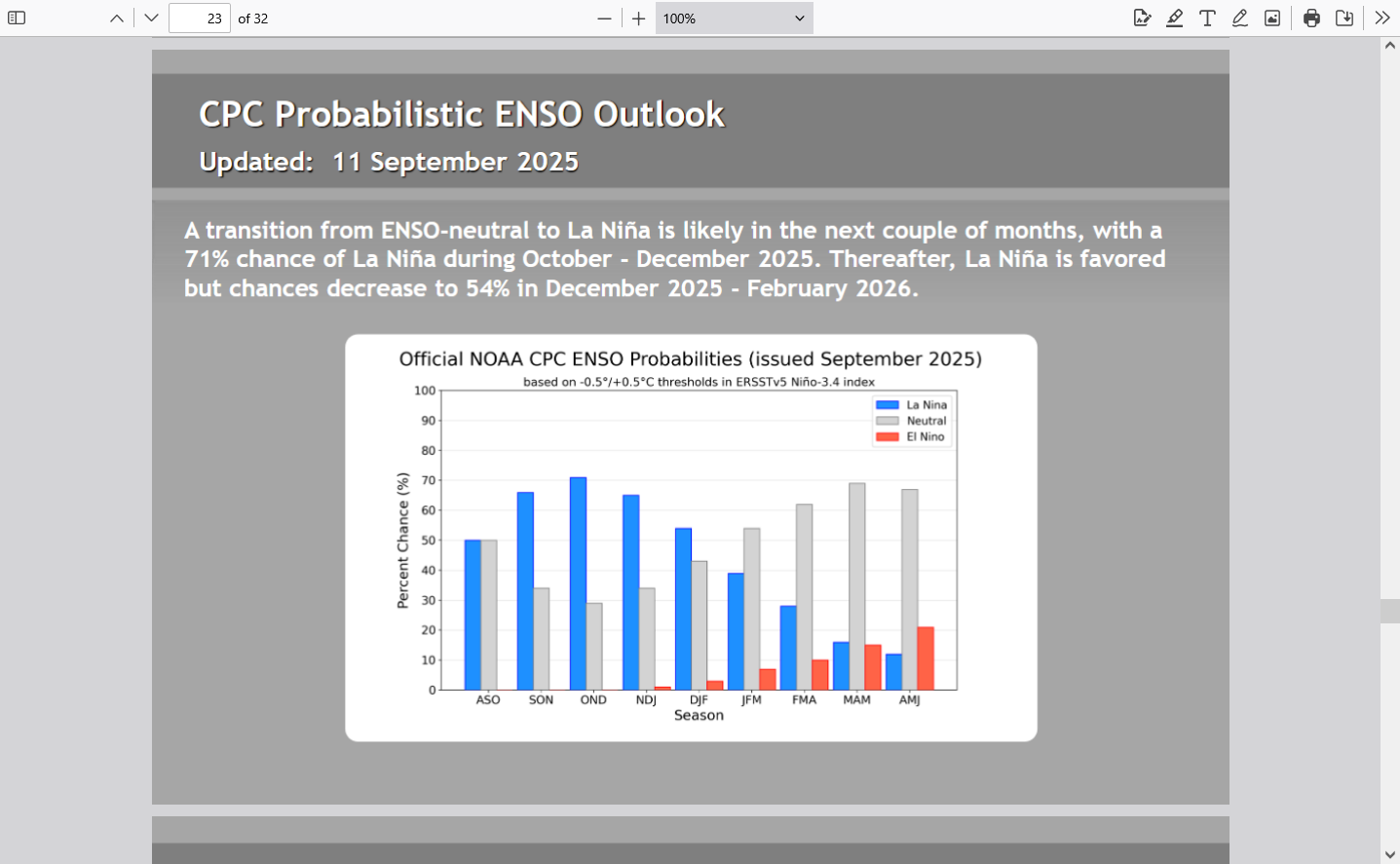 The atmosphere is already in a weak La Nina mode. The official La Nina is a lagging indicator.