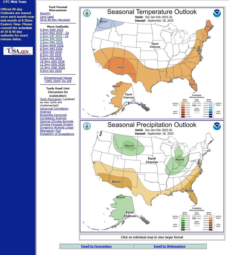 Here's the NWS link for all the long range forecasts. This article uses Jan-Mar for Winter but METEOROLOGICAL Winter is actually DEC-FEB, so we'll use that instead.