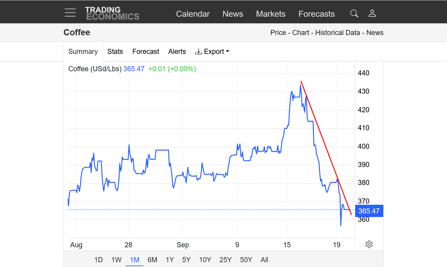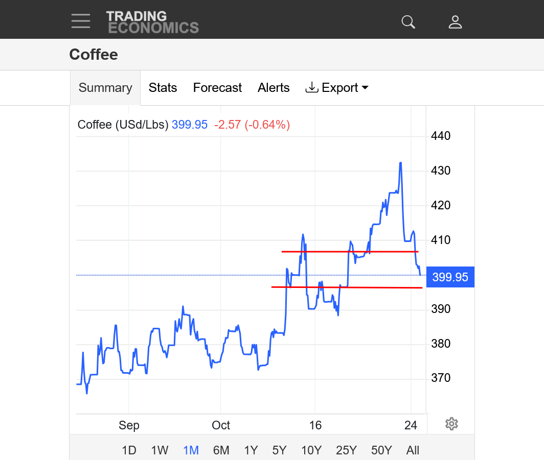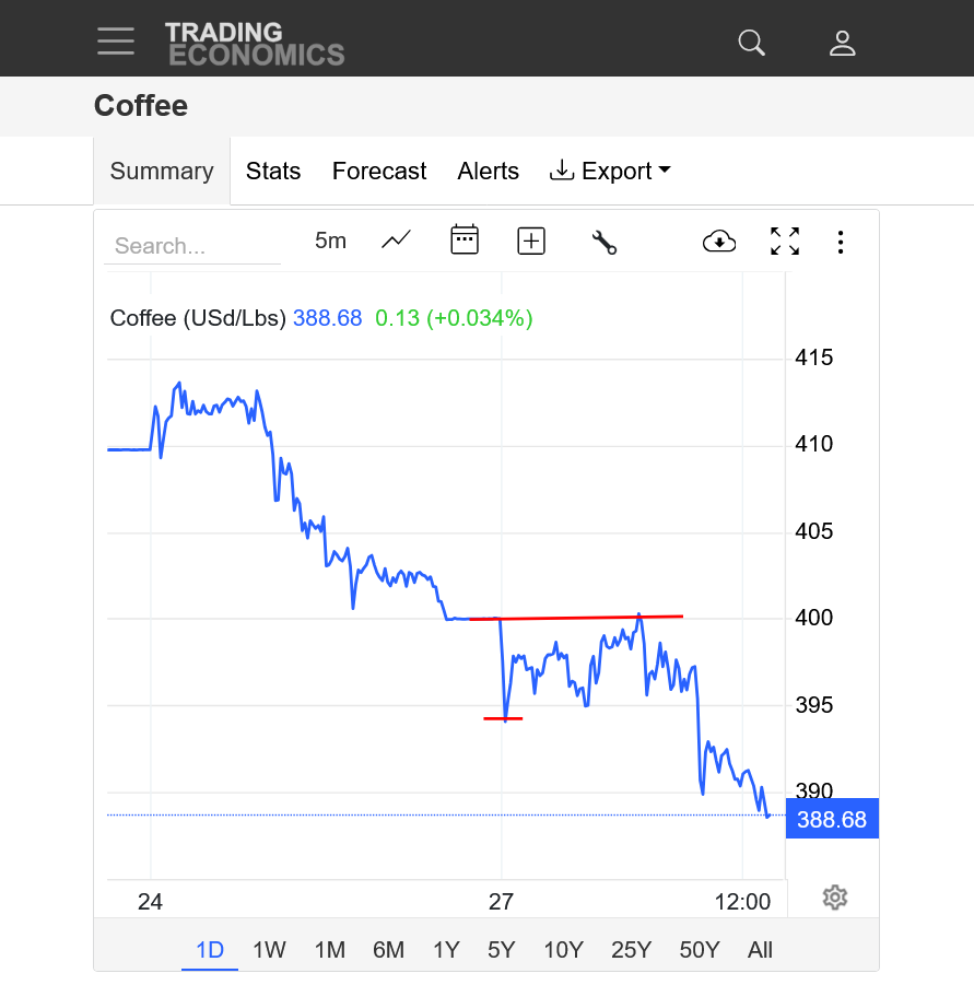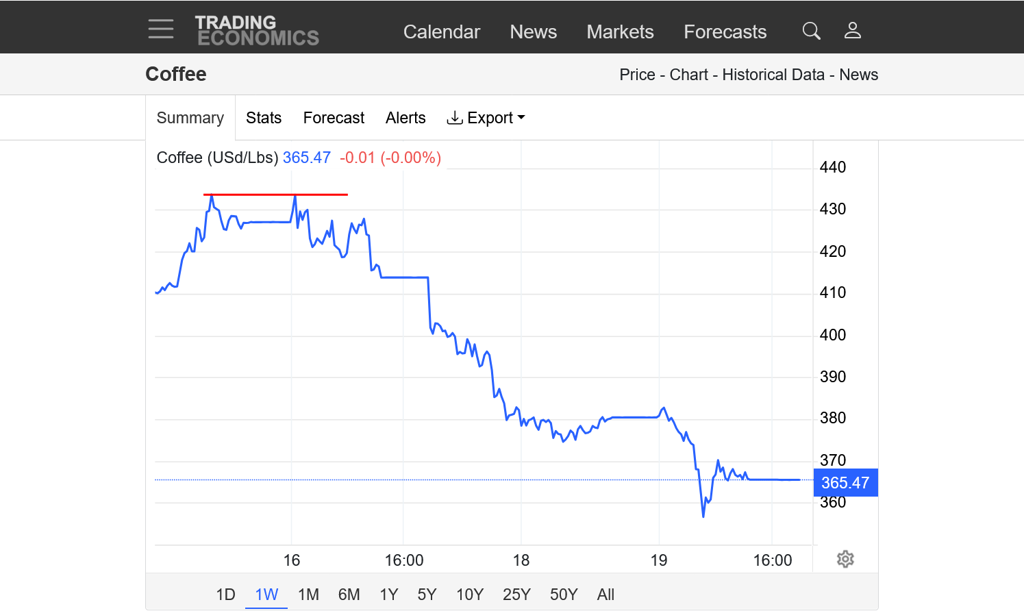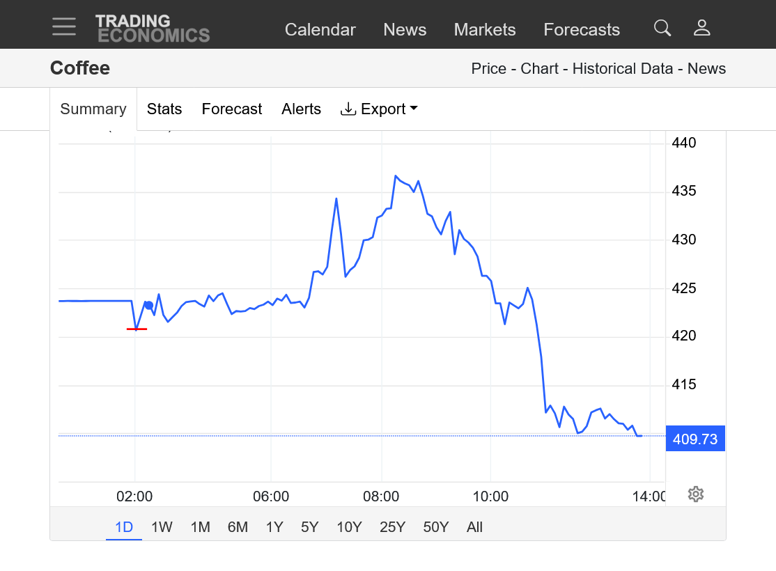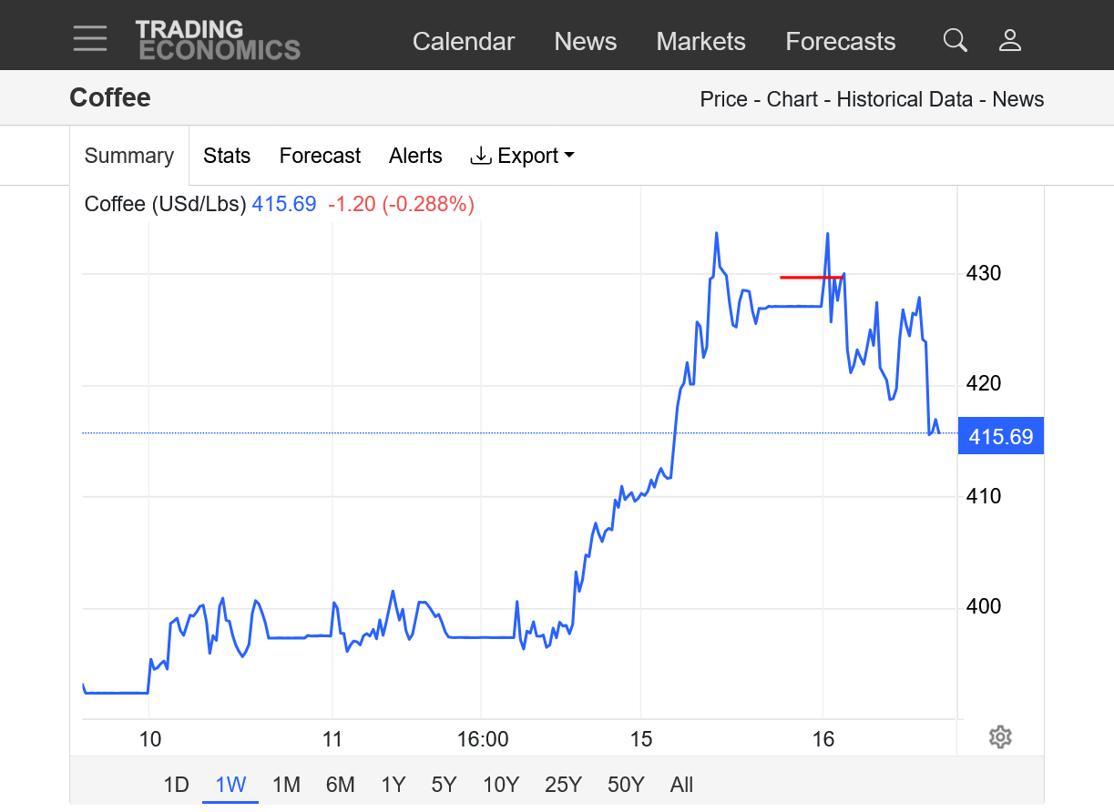 27c X $375 = $10,125. That's one of the biggest 1 day ranges in coffee history!