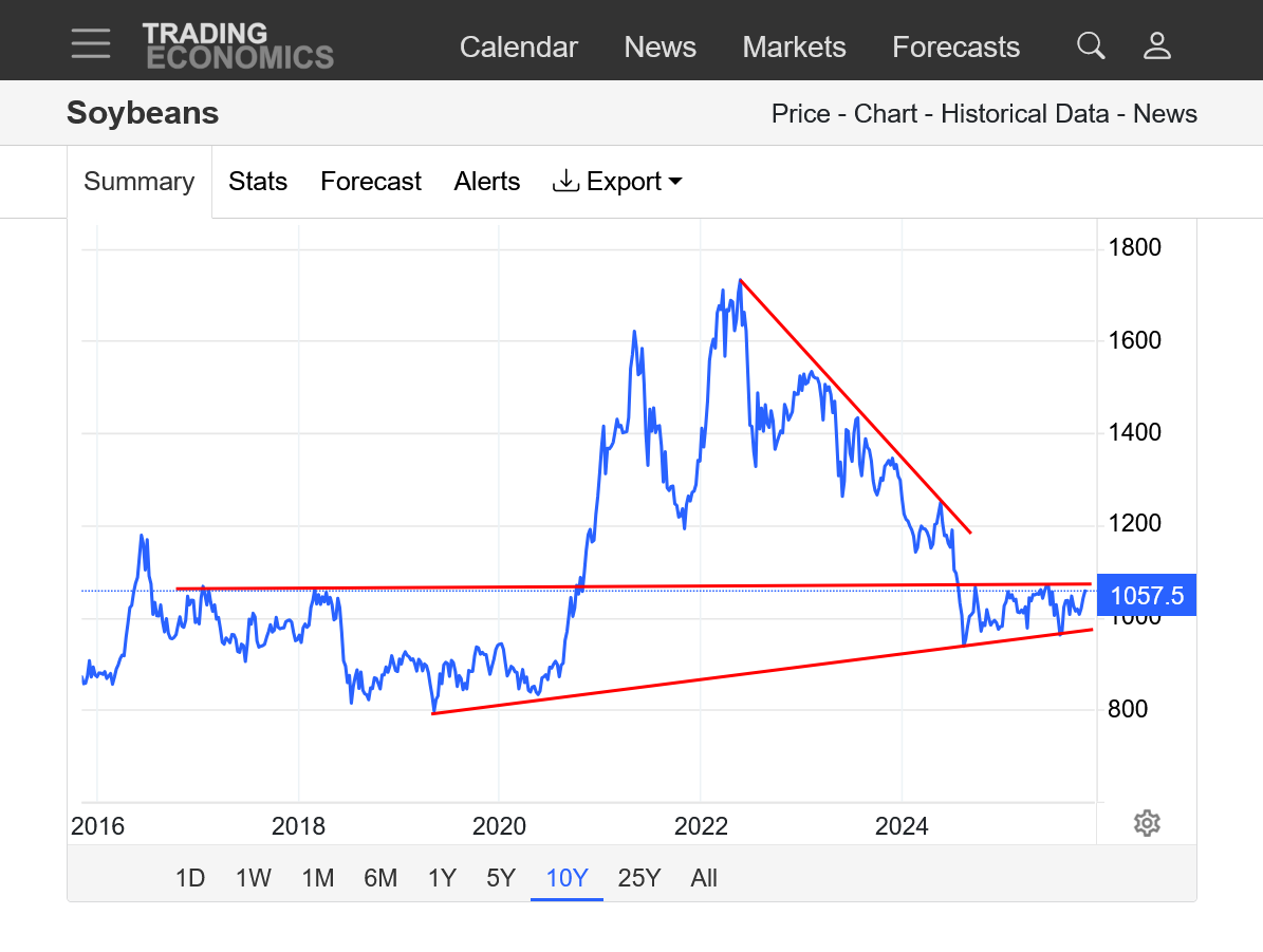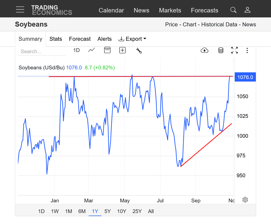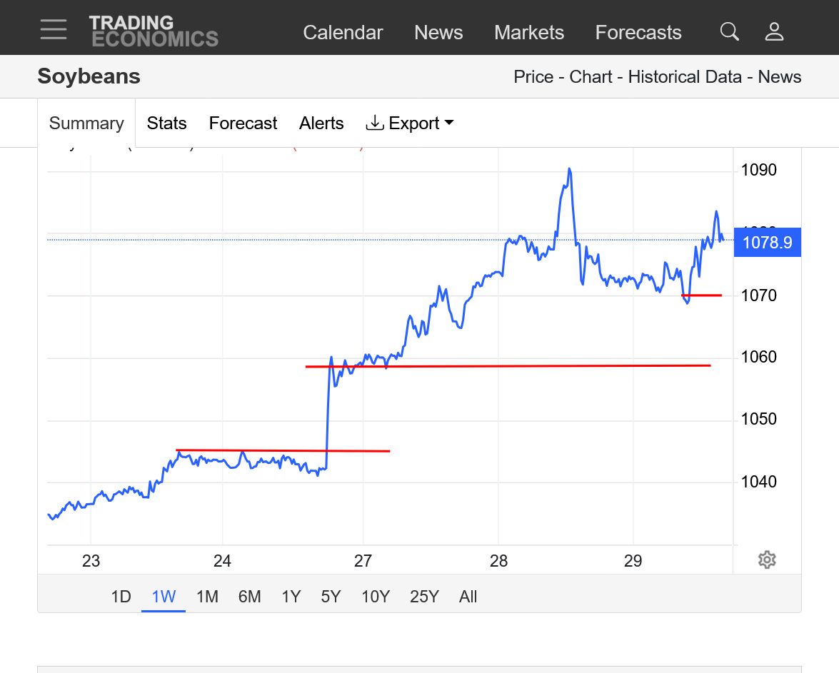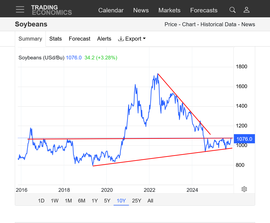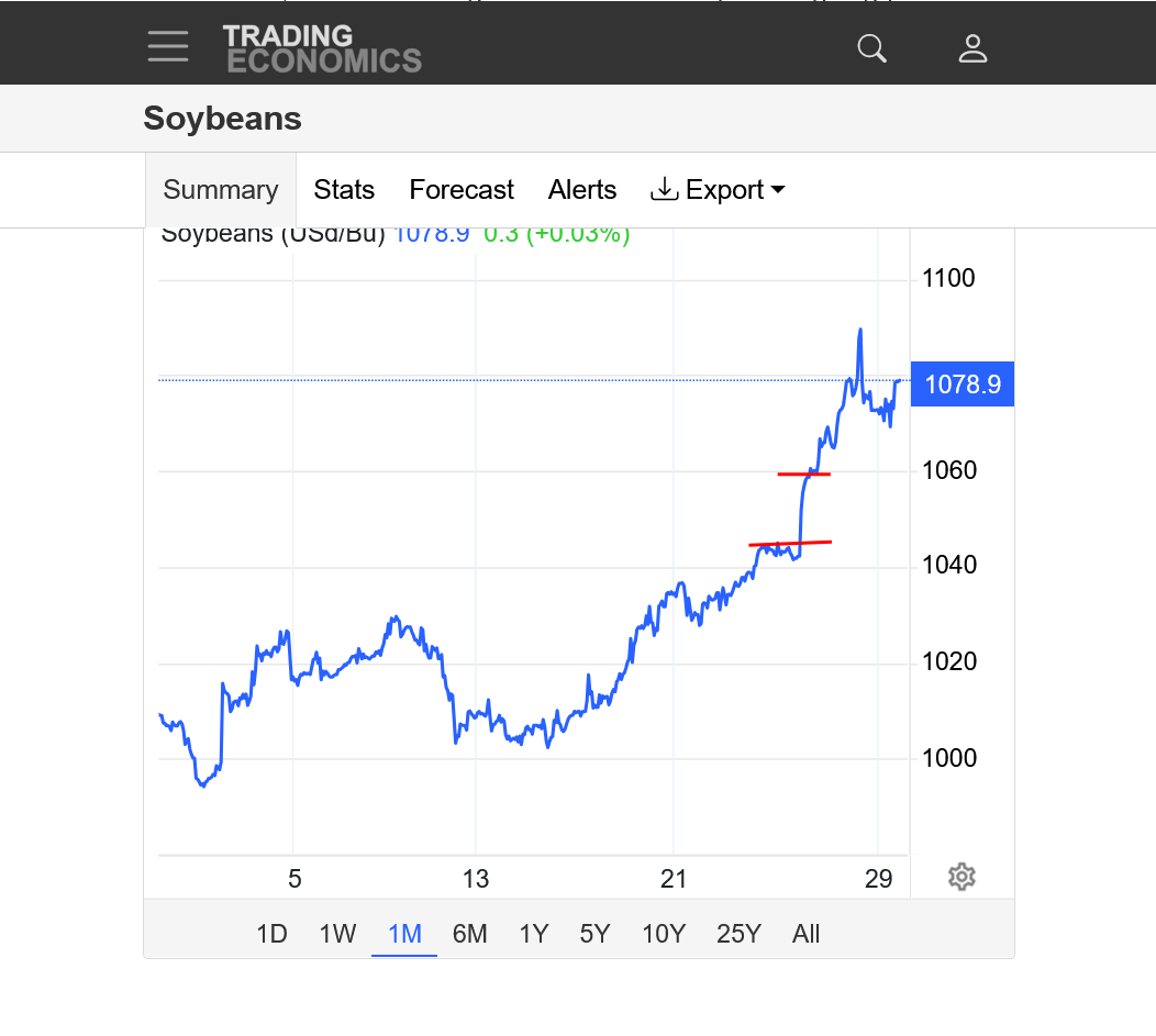 Well here are the numbers for 2024 and do not see anything reflected there that would of spurned beans to suddenly go up a dollar. Looks more like China wants to play hard ball and we should not fear that. We can compete and not let China infect SA in further than it already has. They are diving deep into the interior of that country with little push back.