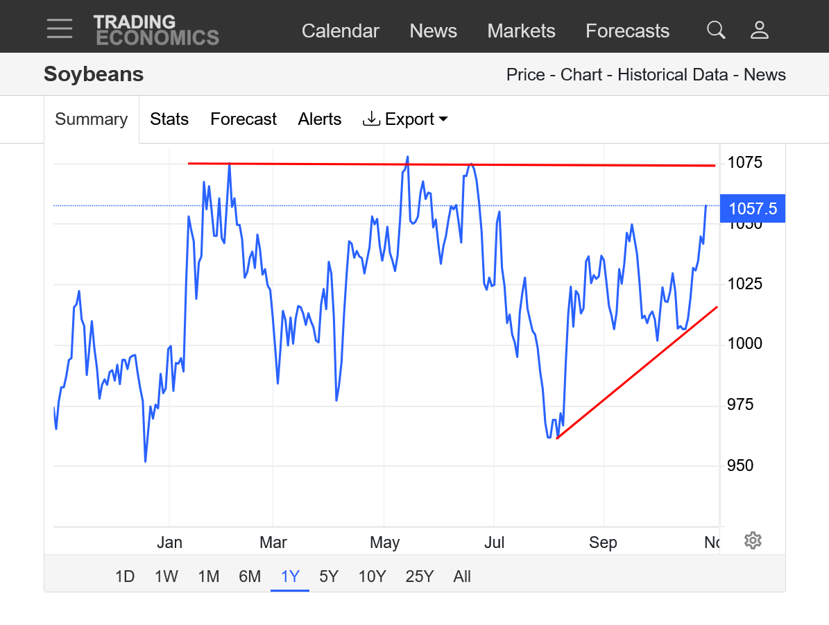 1. 1 year: Much higher harvest low than Summer low. Highest price since 2024.