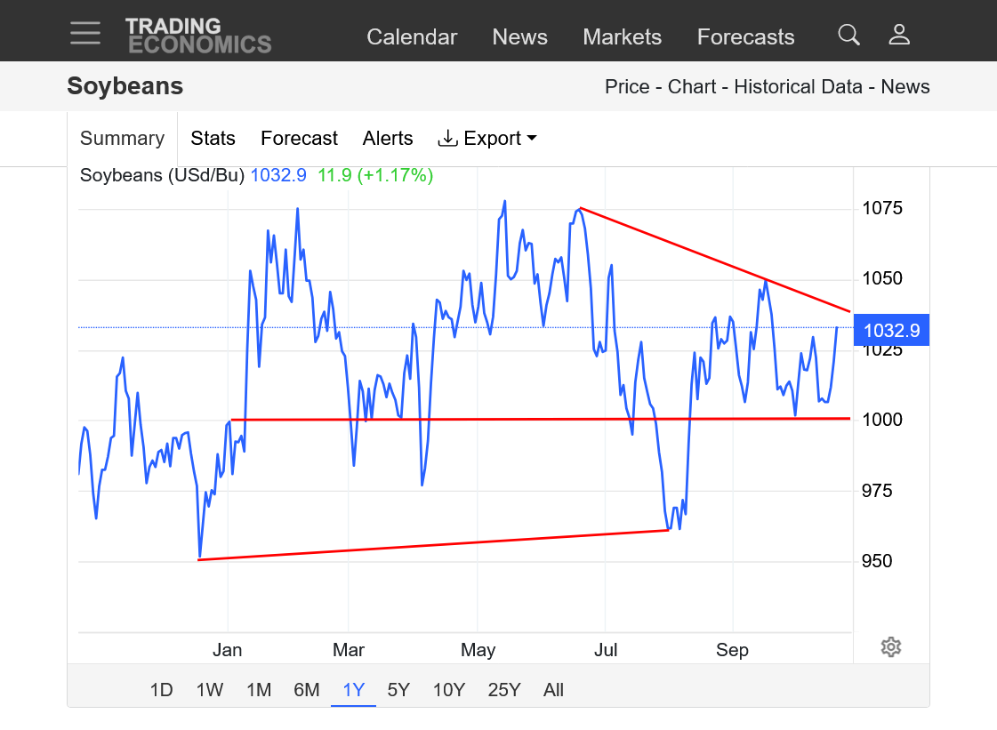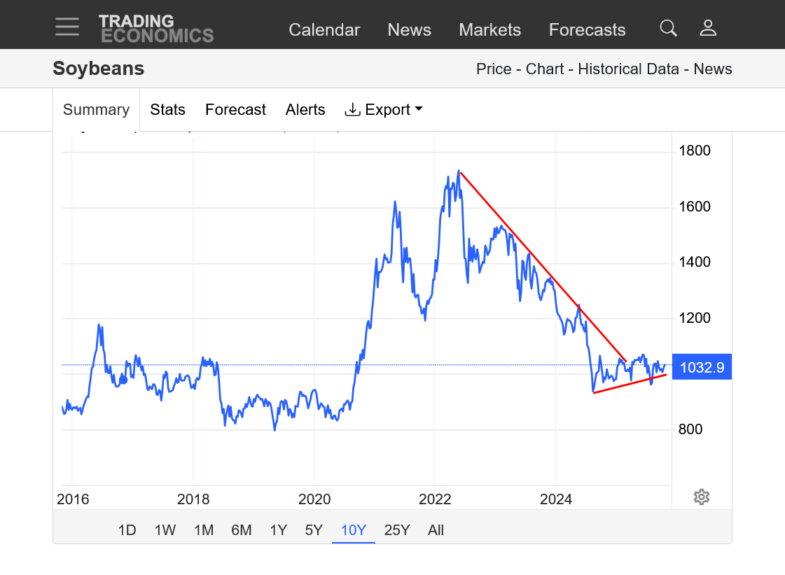Well here are the numbers for 2024 and do not see anything reflected there that would of spurned beans to suddenly go up a dollar. Looks more like China wants to play hard ball and we should not fear that. We can compete and not let China infect SA in further than it already has. They are diving deep into the interior of that country with little push back.