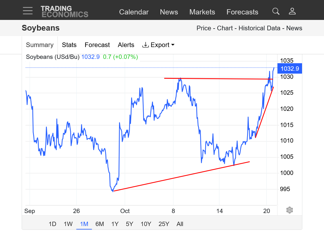 Very high odds that the harvest lows were put in at the end of September with a retest of $10 support last week that held rock solid!