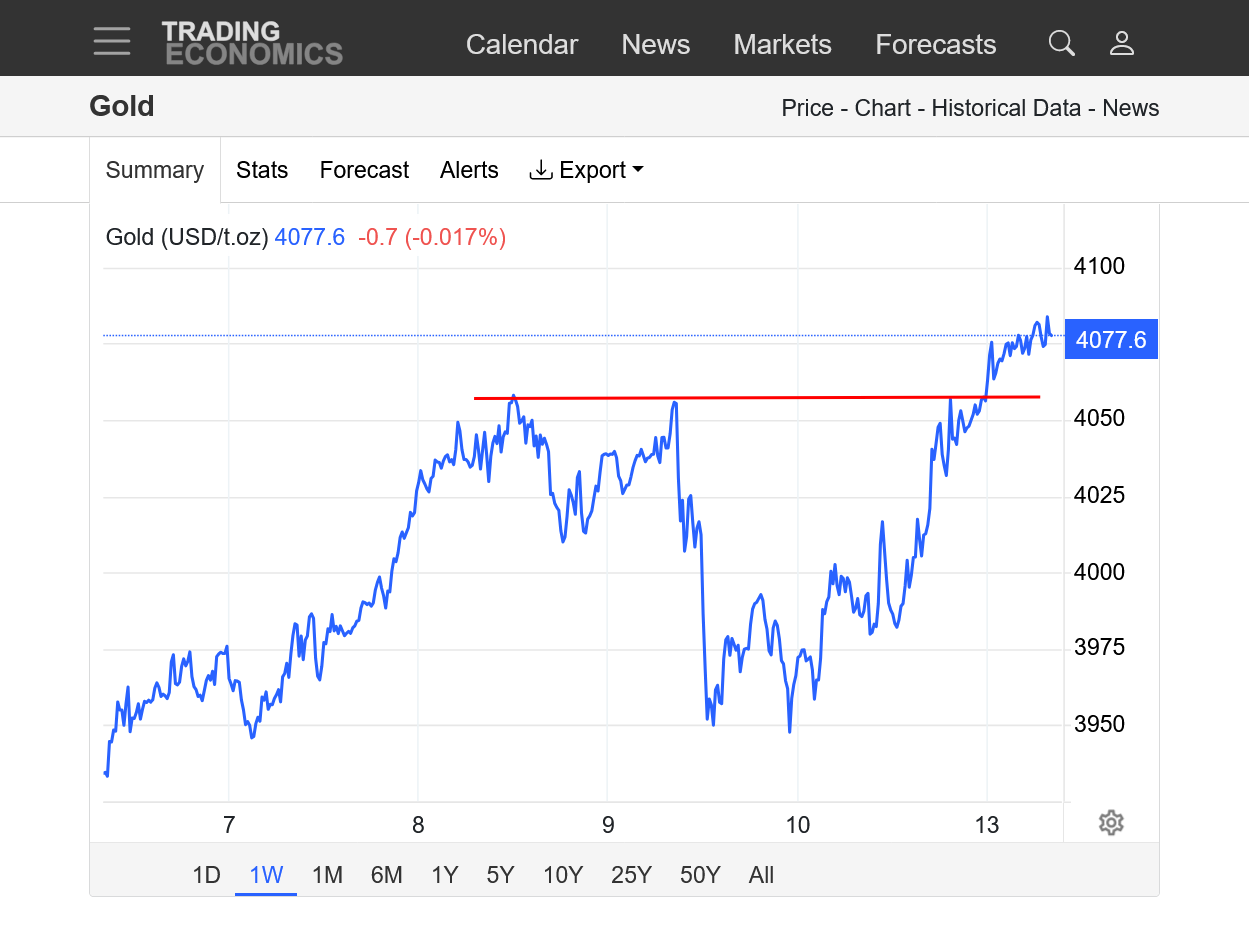 Prices for the last week are below. Red lines are last weeks all time highs.