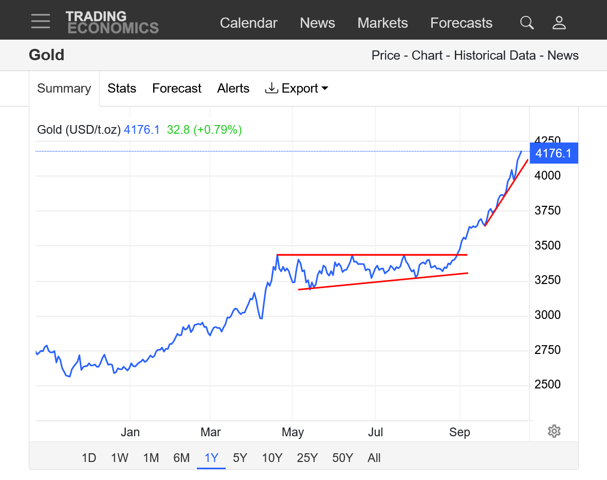 Gold is up 50% this year. If it accelerates, maybe 100% next year? Scary!