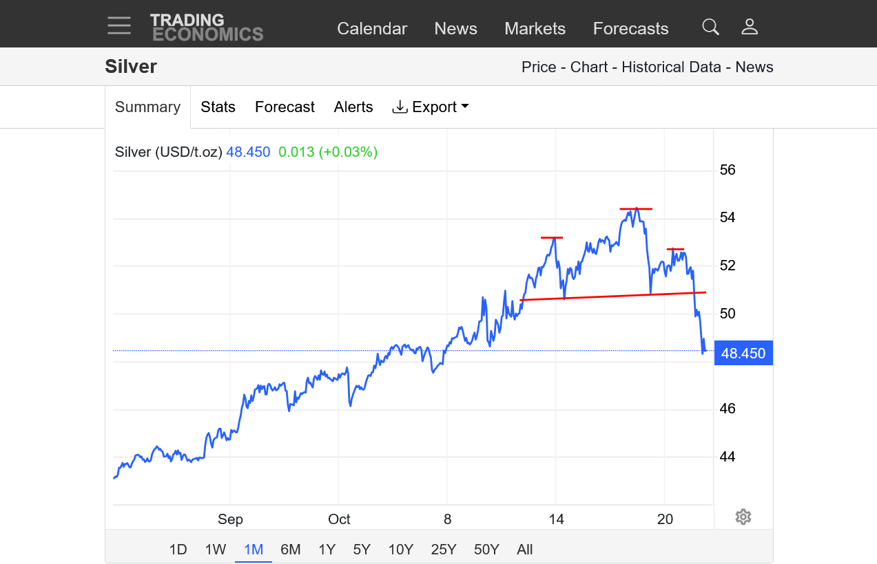 Damaging tariffs are at the top of that list because he's punishing his own country and all the other countries that benefit from free trade using deranged thinking. I would venture to guess if the tariffs were removed, for instance the highs would likely be in for gold and silver.