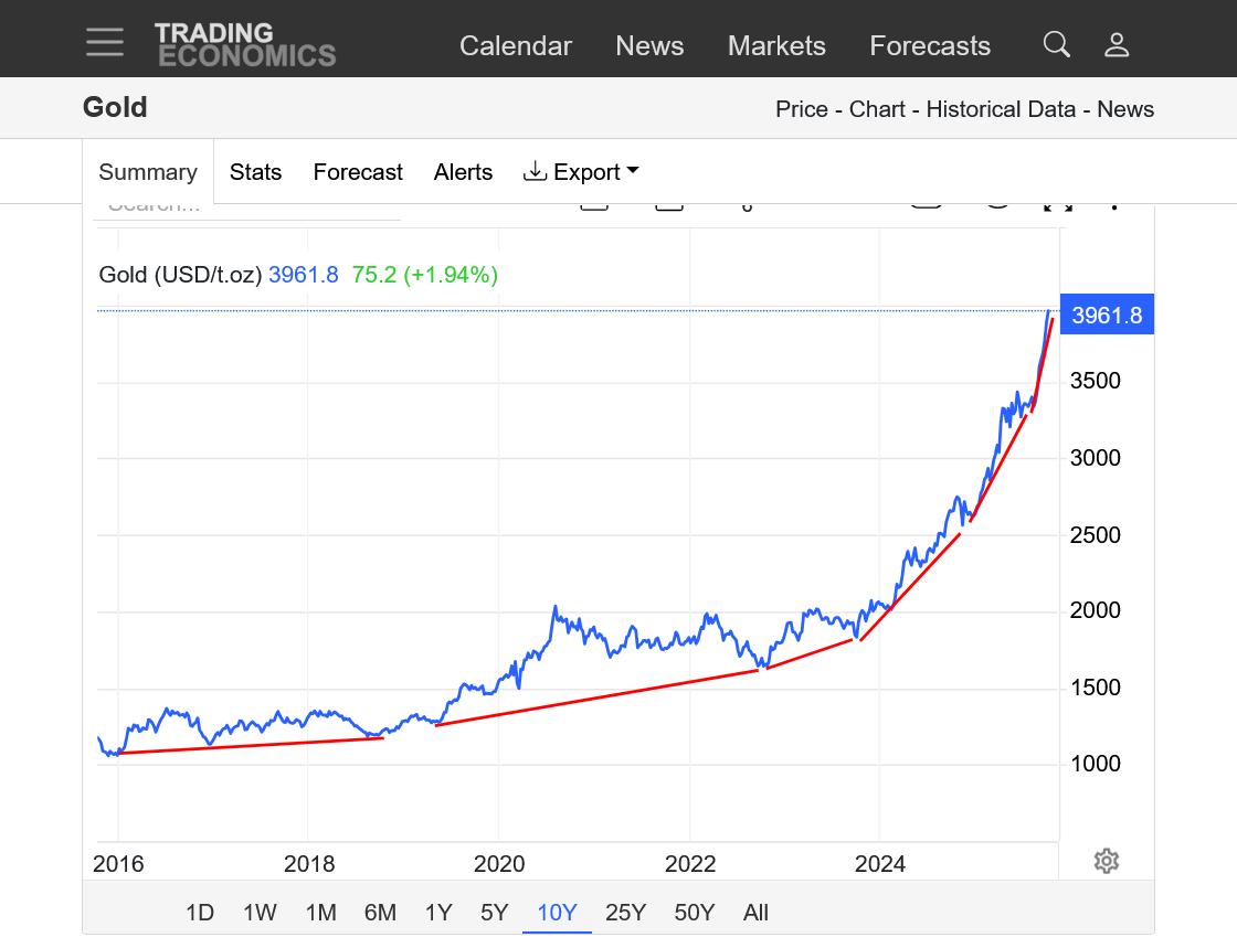 Gold is up 50% this year. If it accelerates, maybe 100% next year? Scary!