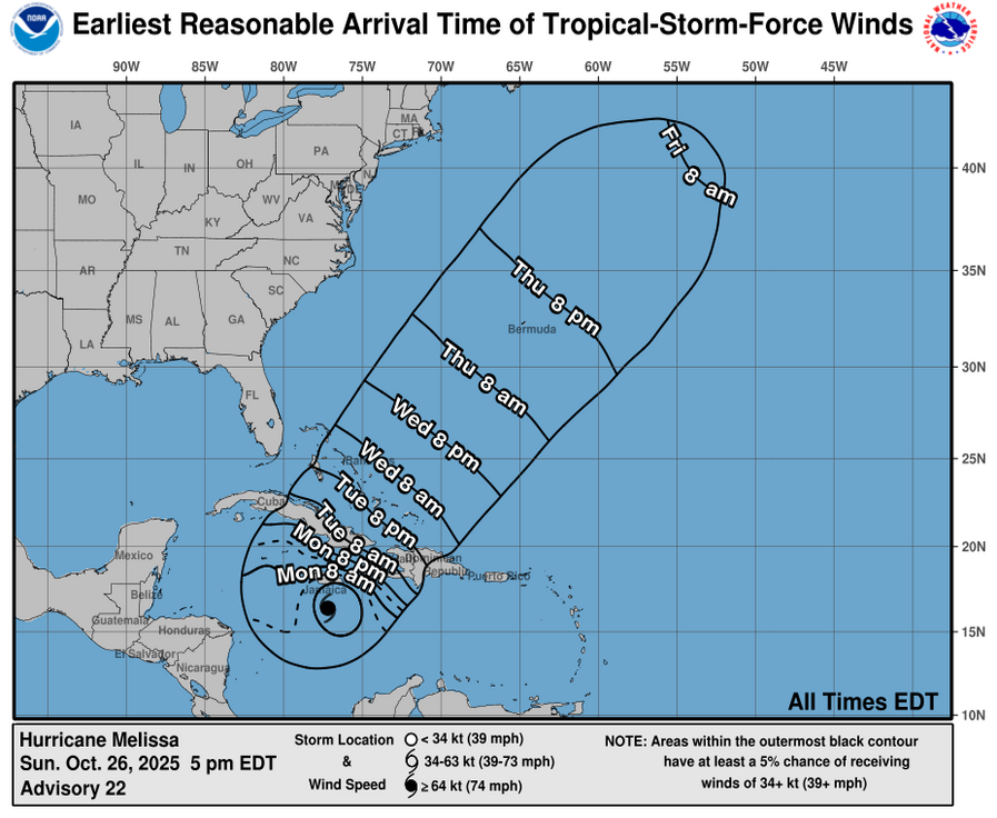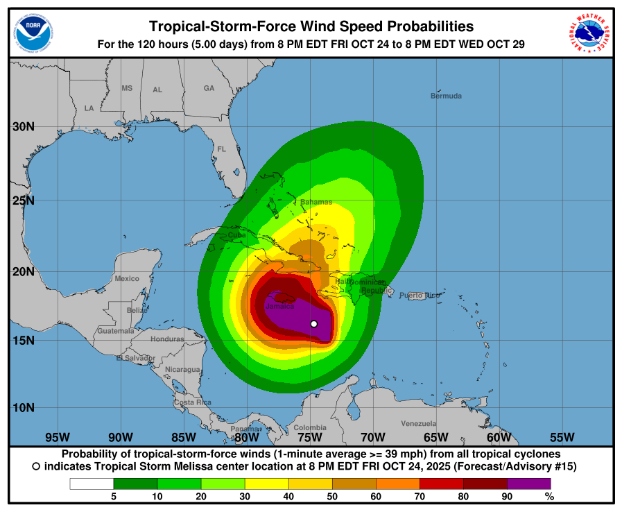 forecast of Melissa. Interests elsewhere in Hispaniola and Cuba