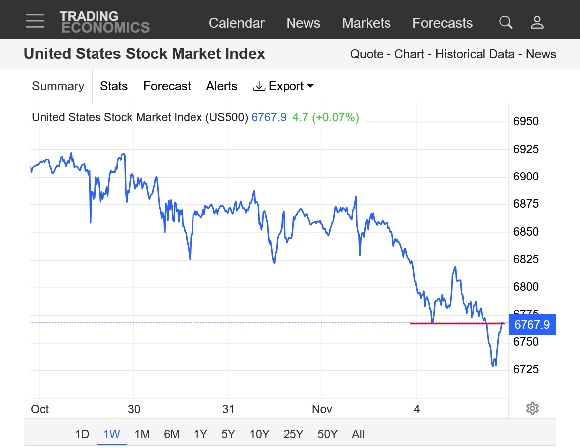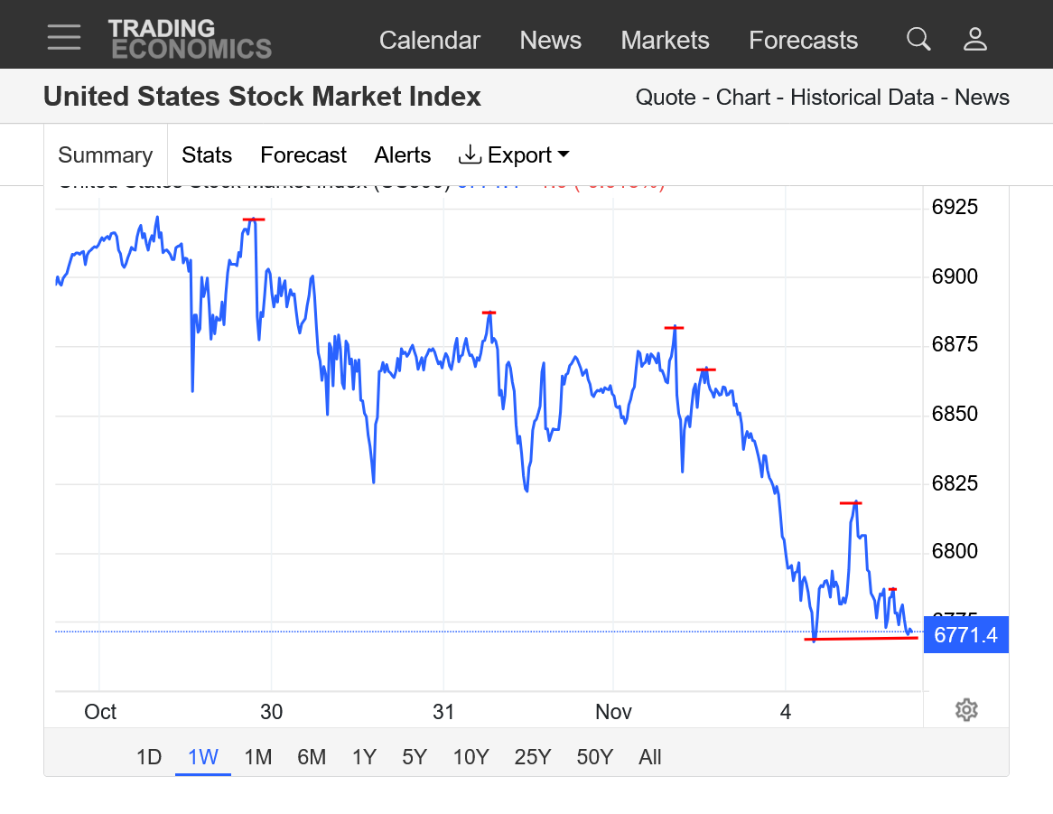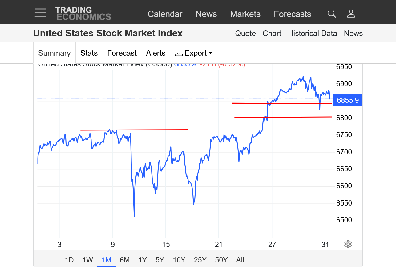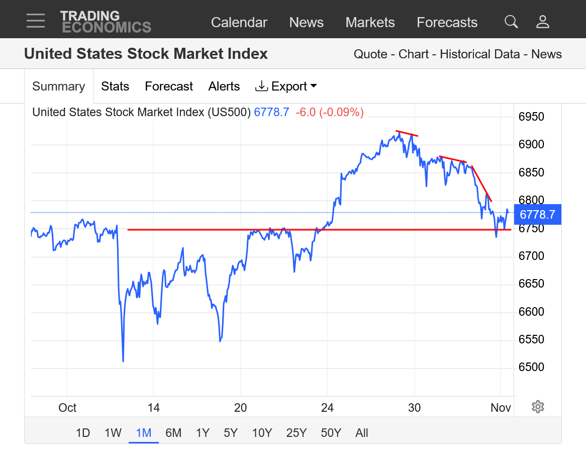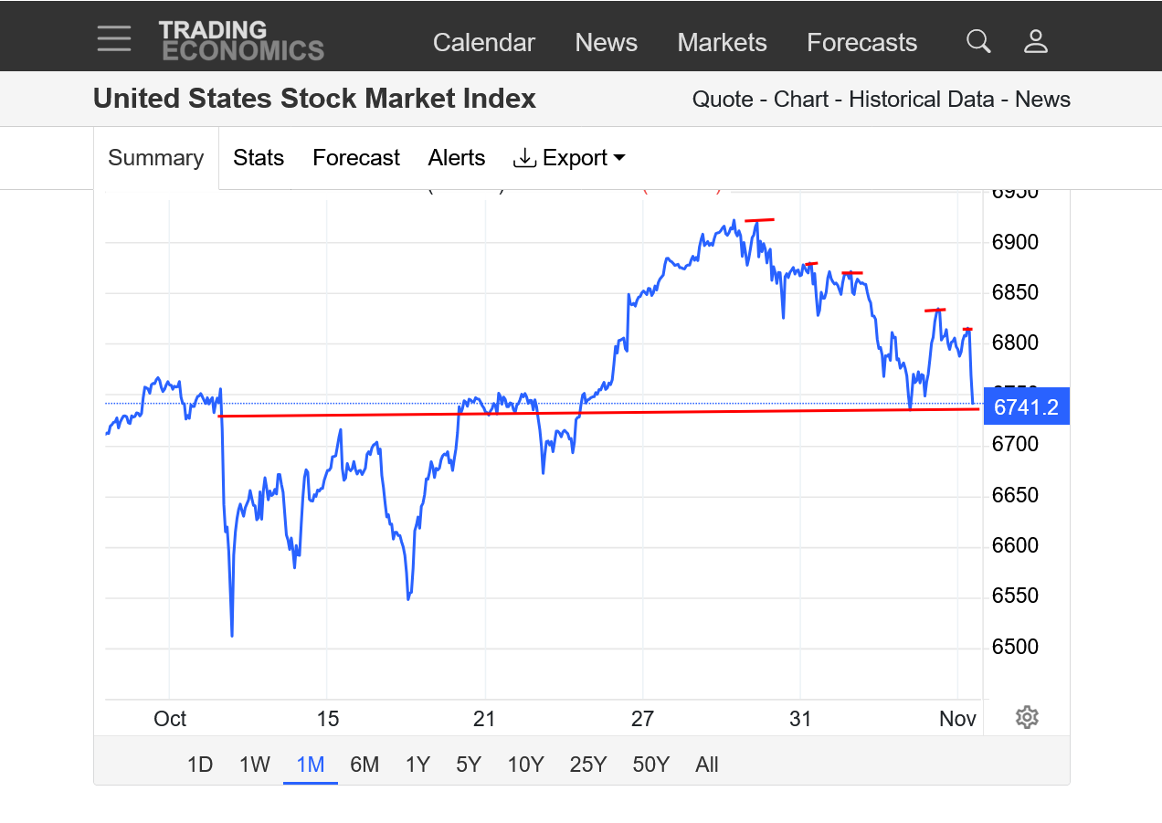 News could break us in either direction. News of the government shut down ending would take us to the upside since the extended shut down, negative tariff and economic news has somehow been unable to keep us down.......so far.