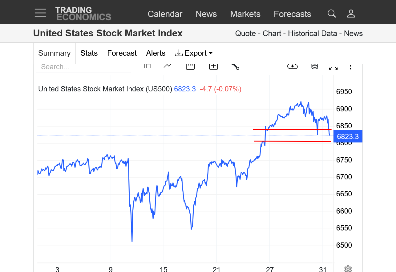 I moved stop down to 6810. I was looking for a pop and drop. Not getting it. I'll tighten up the stop loss.