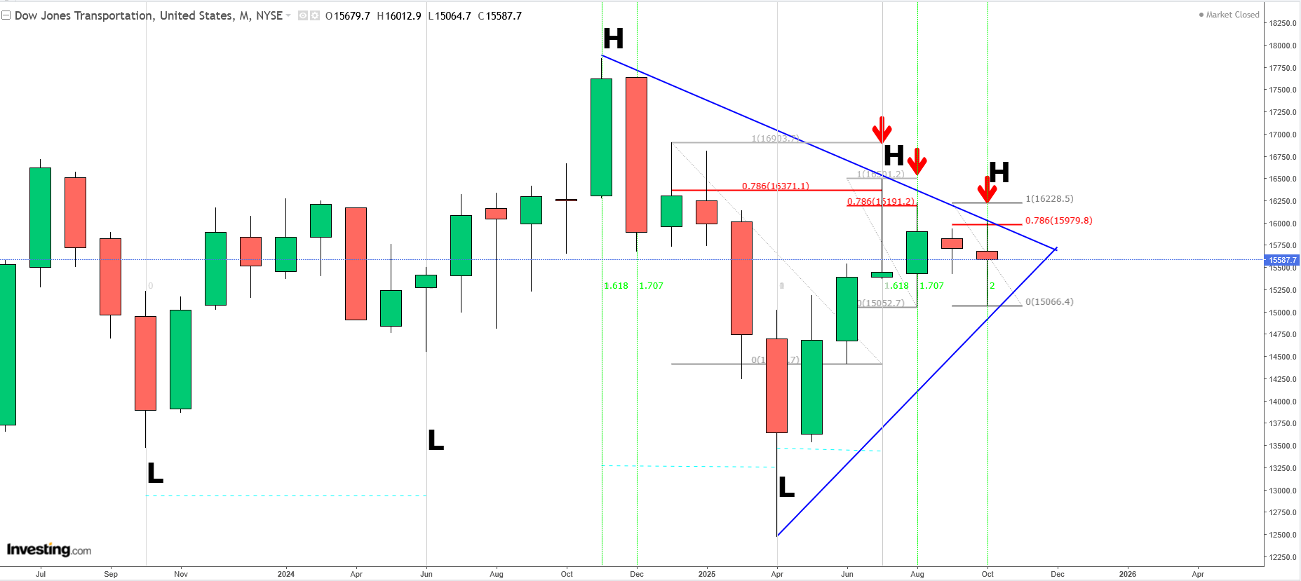 The above chart is the monthly Dow Jones Transports, typically a harbinger of things to come ... stay tuned !