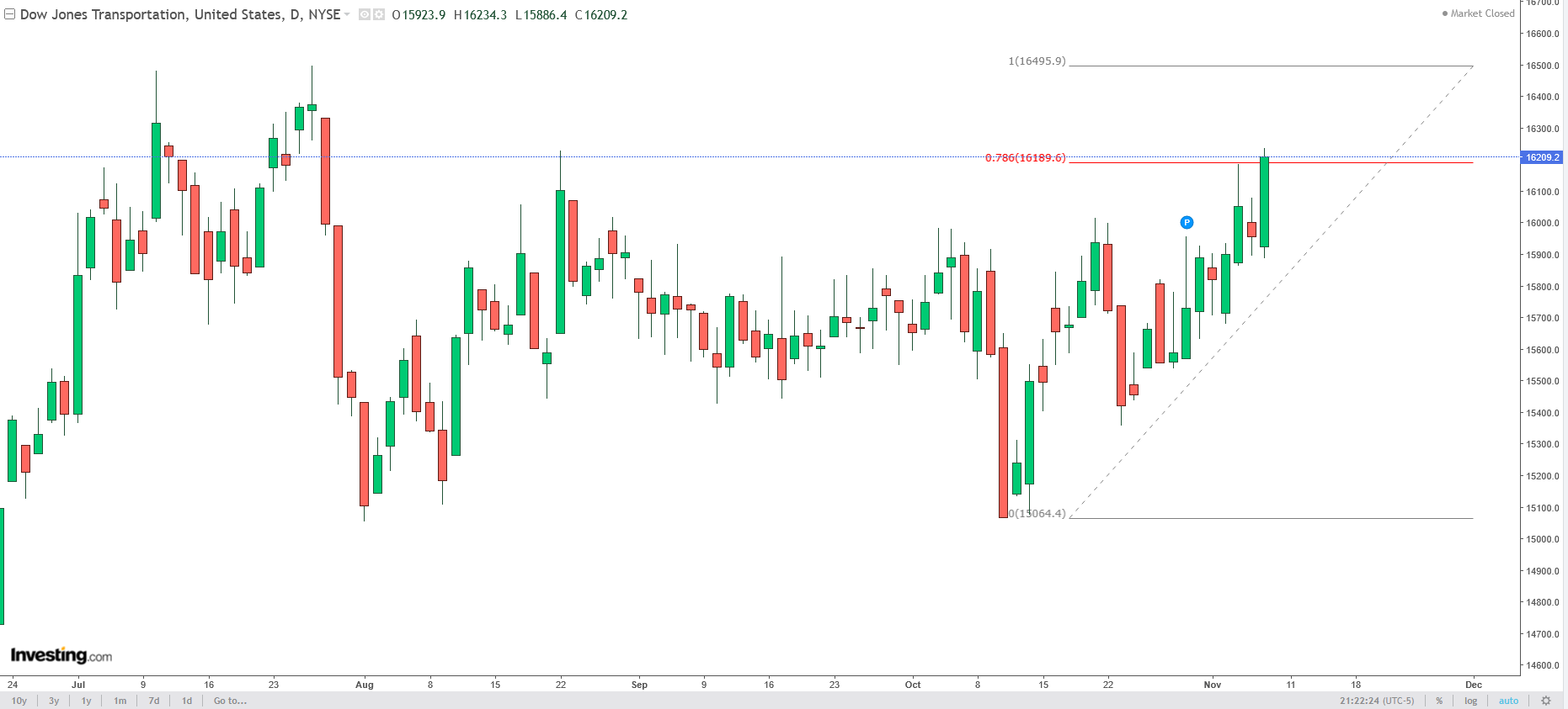 The DJI and the DJT closed above last weeks' highs today; final gasp maybe ?
