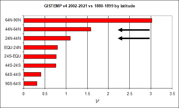 Meteorology 101 tells us what happens when the planet sees the temperature of the highest latitudes (coldest places, especially coldest time of year) warmed up the most. This is beneficial warming!