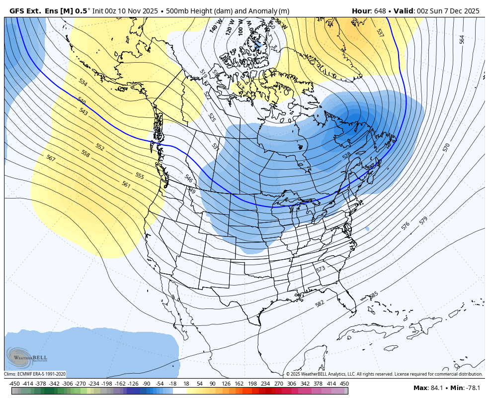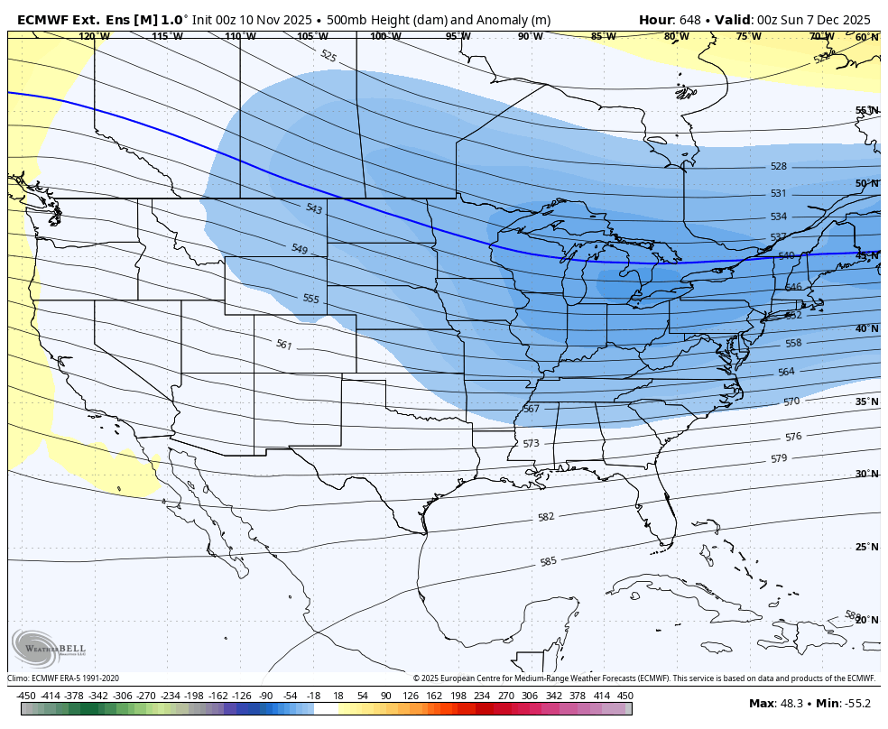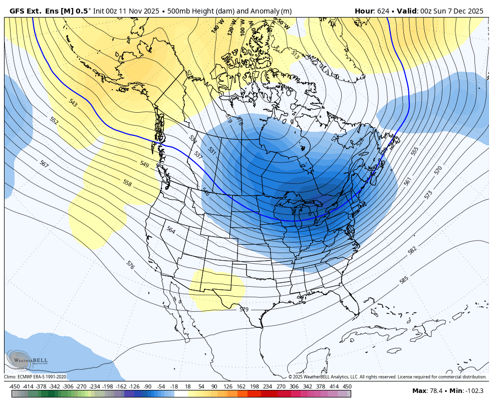 Those maps are just THE START of a potentially much colder pattern. This evening's updated longer range GEFS for 11-11-25 for the end of the first week in December was the coldest yet.