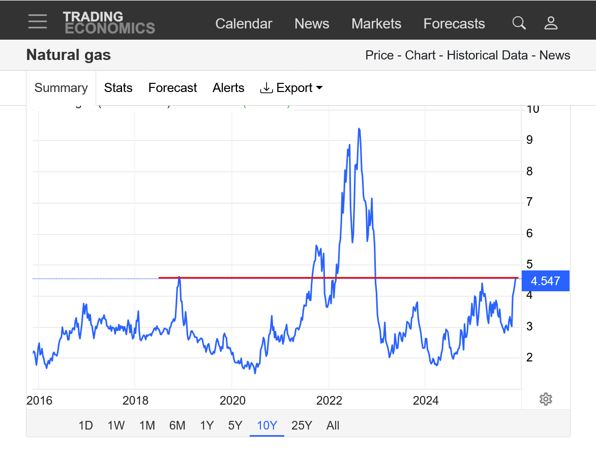 There could be something else going on too. Trump killing green energy, which has reduced wind energy and might increase the demand for natural gas and we are pushing ng exports???
