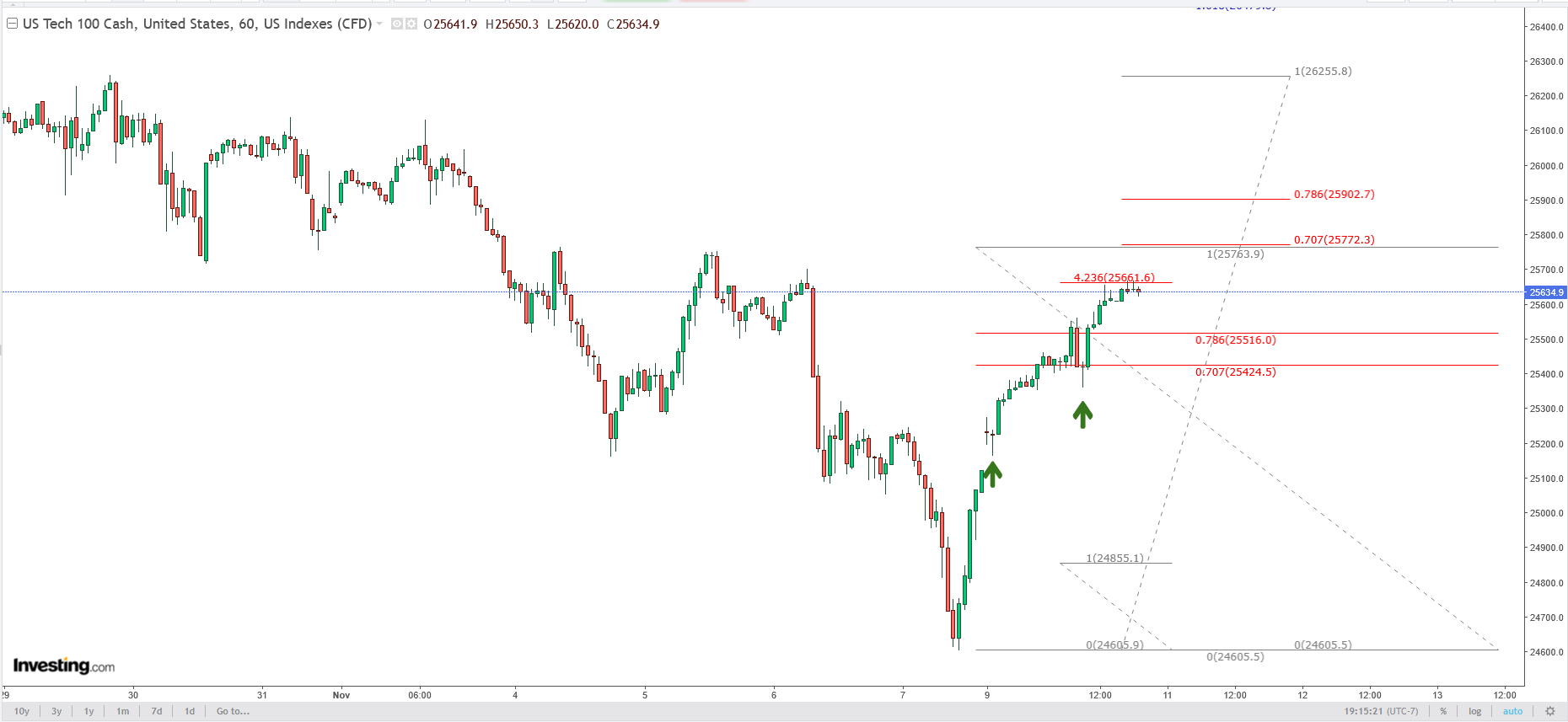 There is a point of interest on this chart at the 0.786 retracement and 2.618 extension confluence roughly within a point and a half from one another