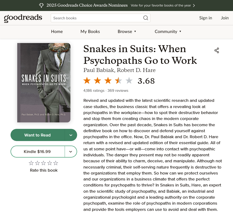 https://www.goodreads.com/book/show/132615.Snakes_in_Suits