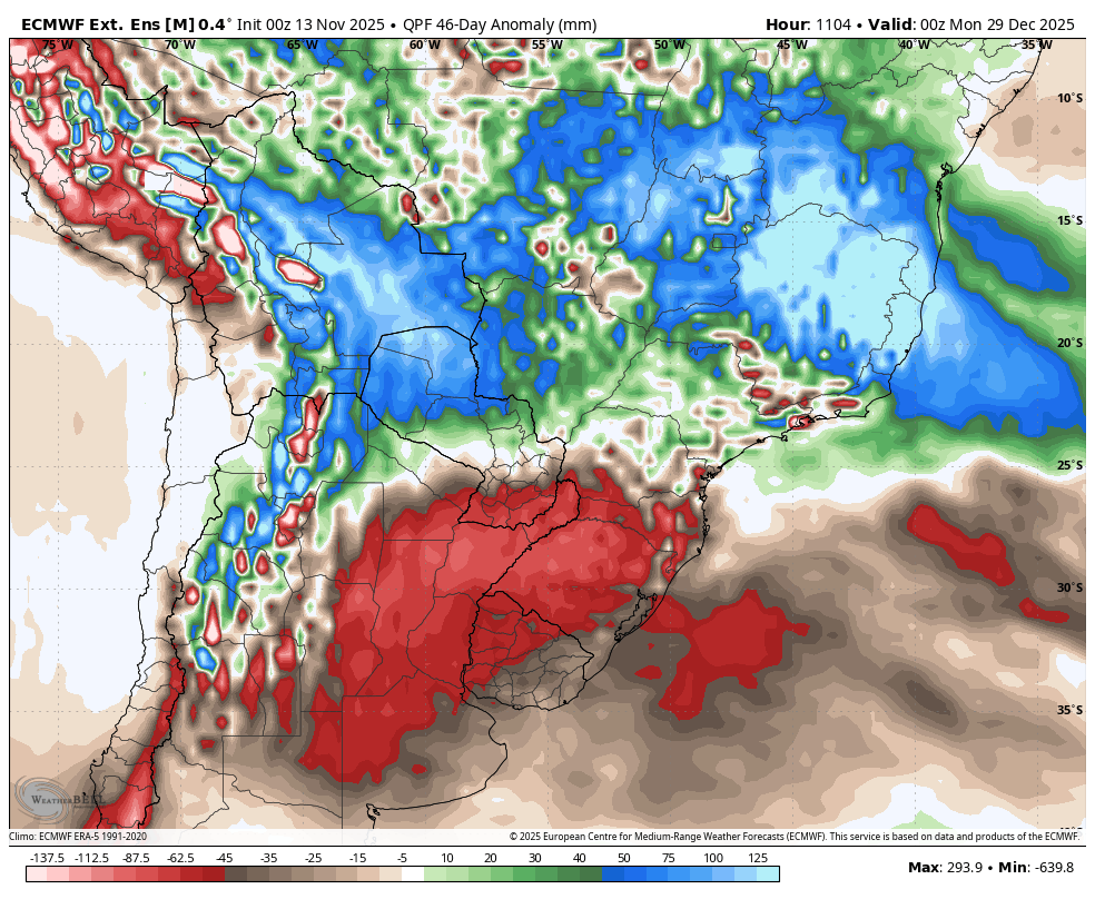 Recent rains in South America. It's been dry in Brazil but their rainy season(monsoon) usually kicks in right around now. Argentina looks ok from what I can tell.