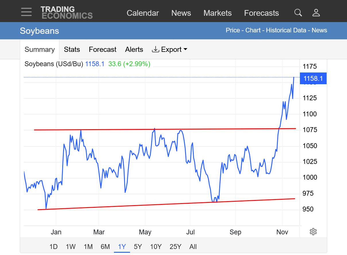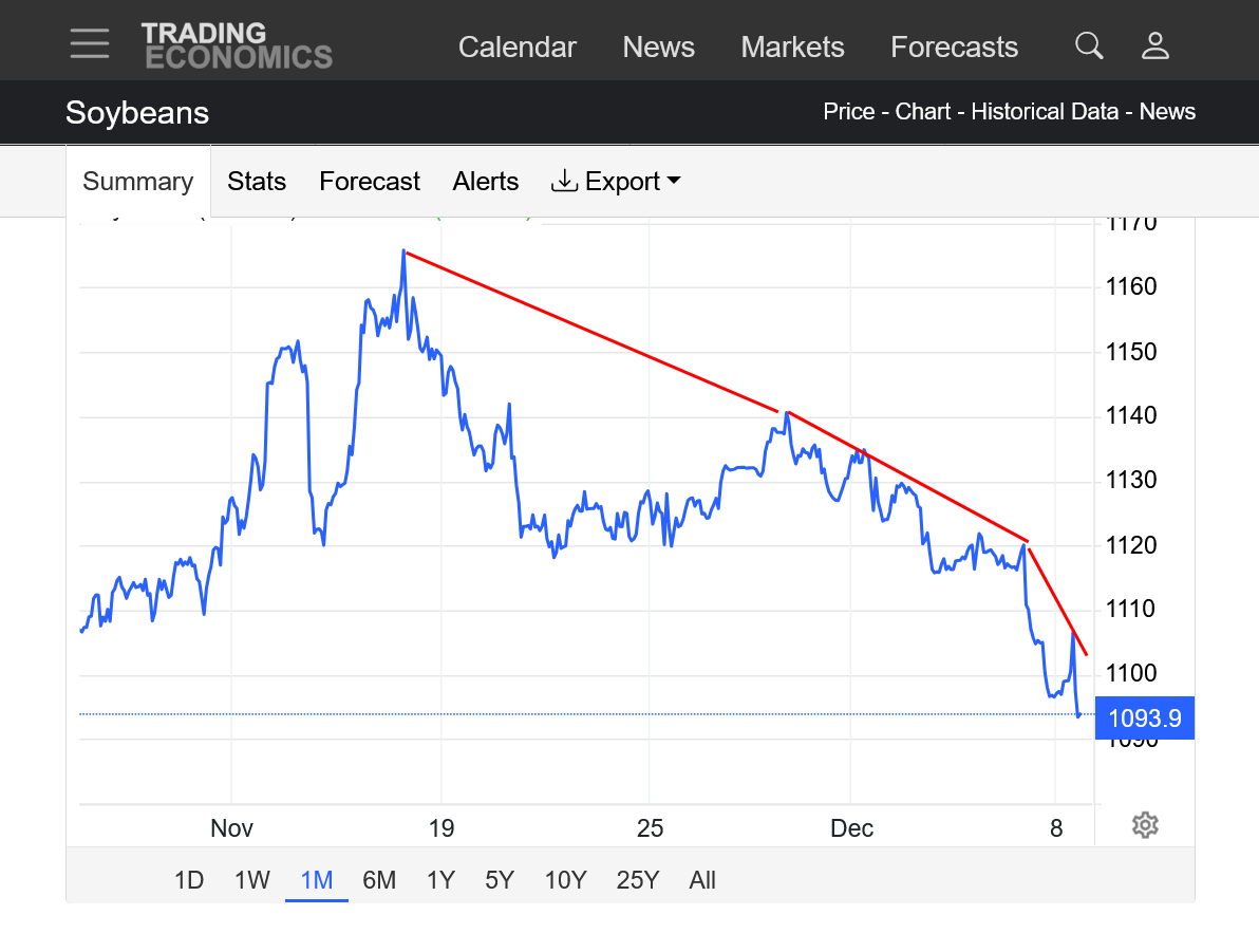 The White House's official stance is that China will book 12 mmt of U.S. soybeans in Nov-Dec. Let's be generous and say China has bought 1 mmt so far. Starting today through the end of the year (incl. holidays/wknds), China must buy 3.5-4 cargoes PER DAY to fulfill this.