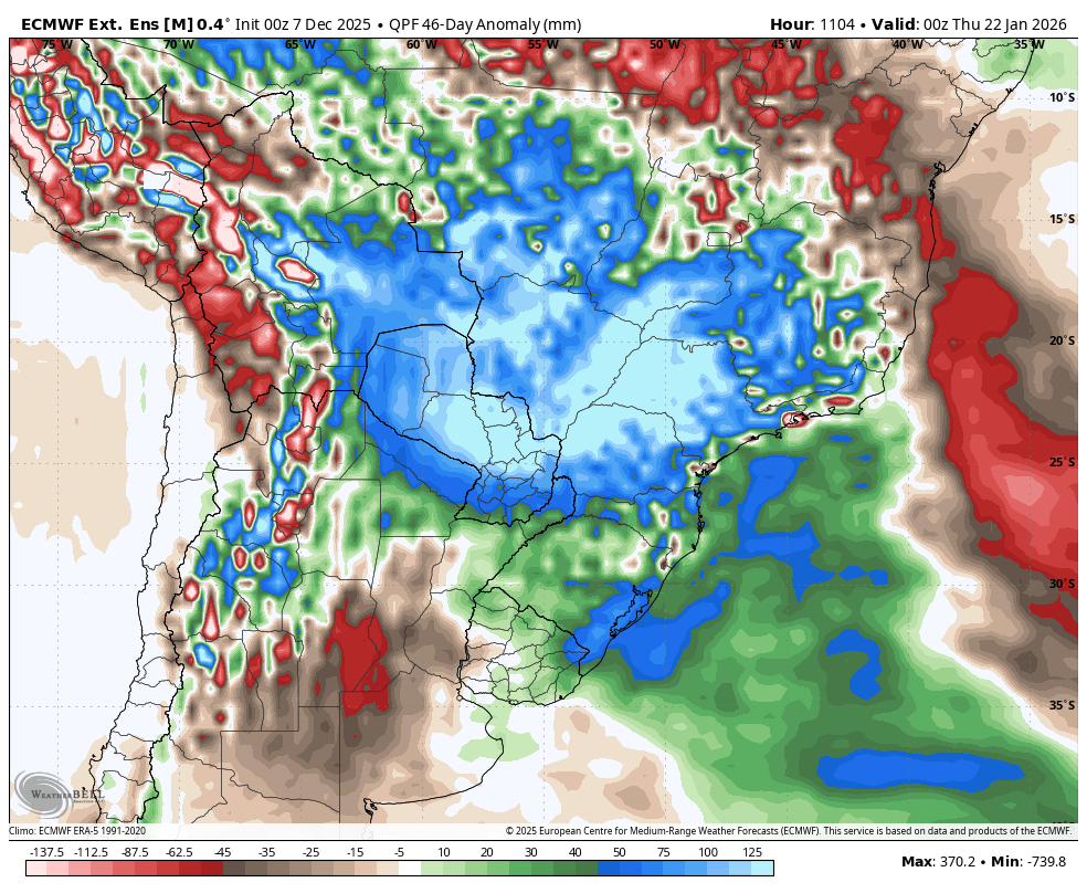Again, this is where they grow soybeans. Rio Grande de Sul in S.Brazil is likely to experience dryness along with N.Argentina.