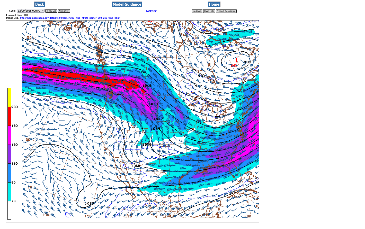 The red colors(in knots) is a 200+ mph jet streak embedded within the jet stream(atmospheric river).