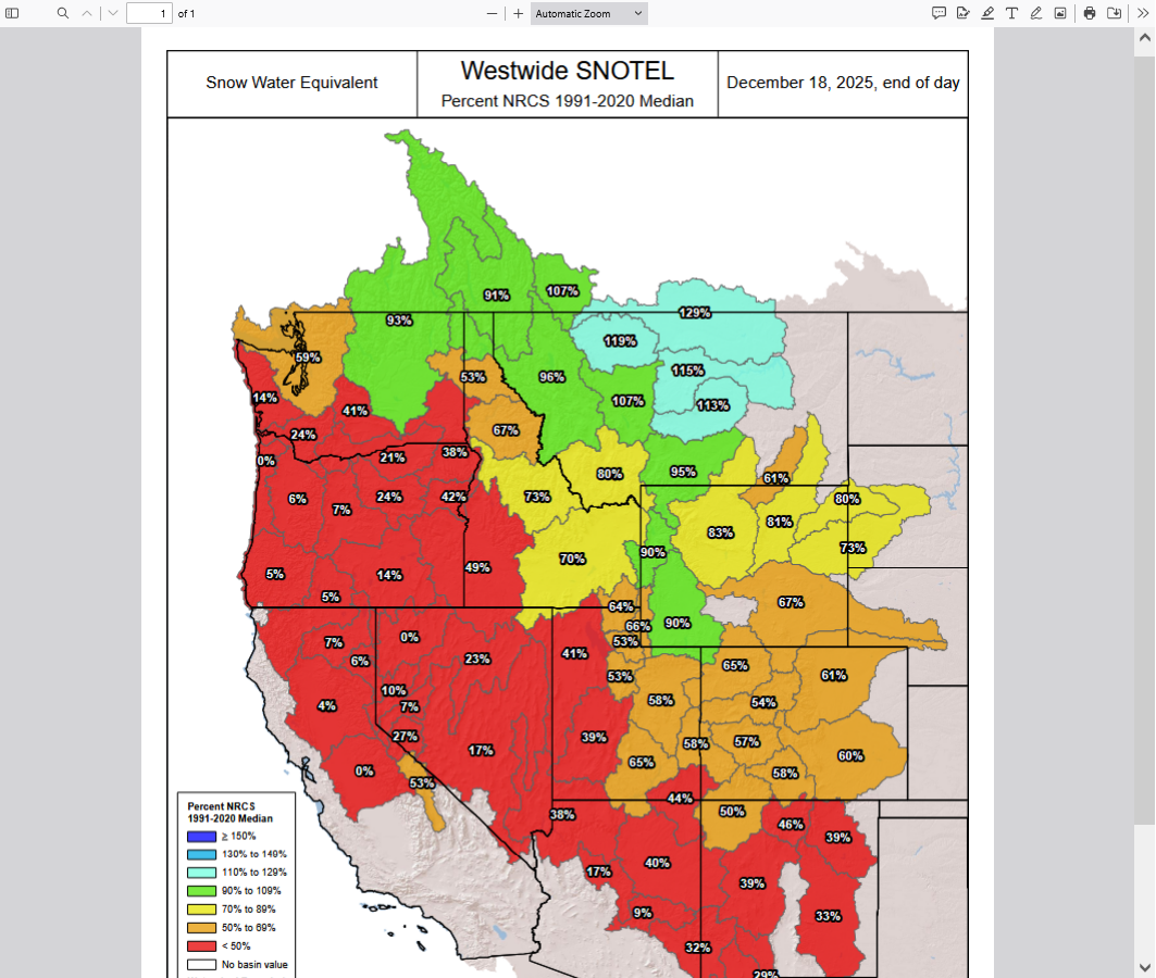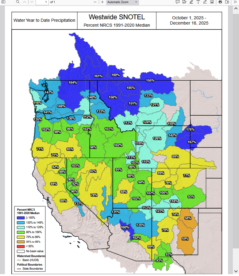I'm looking for the comparable information for OR and WA right now but the state of CA is in great shape for this time of year, still needing more rains.........and they are coming.