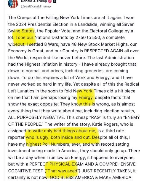 While posting lunatic screeds on Truth Social that, with 100% certainty demonstrate how unstable he's become!