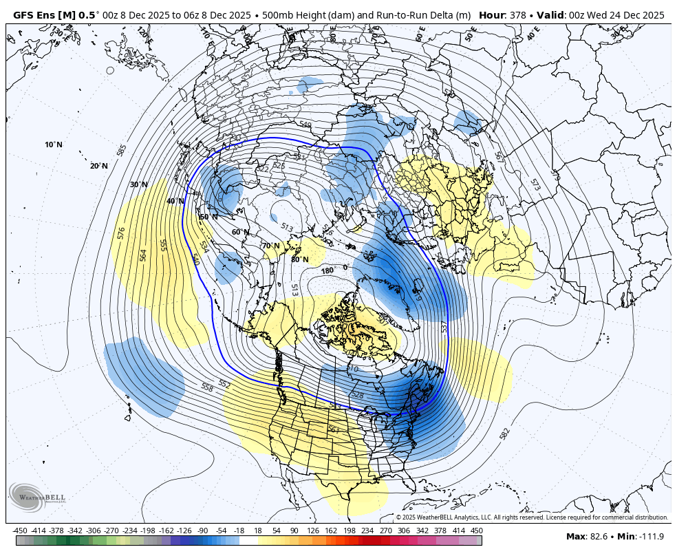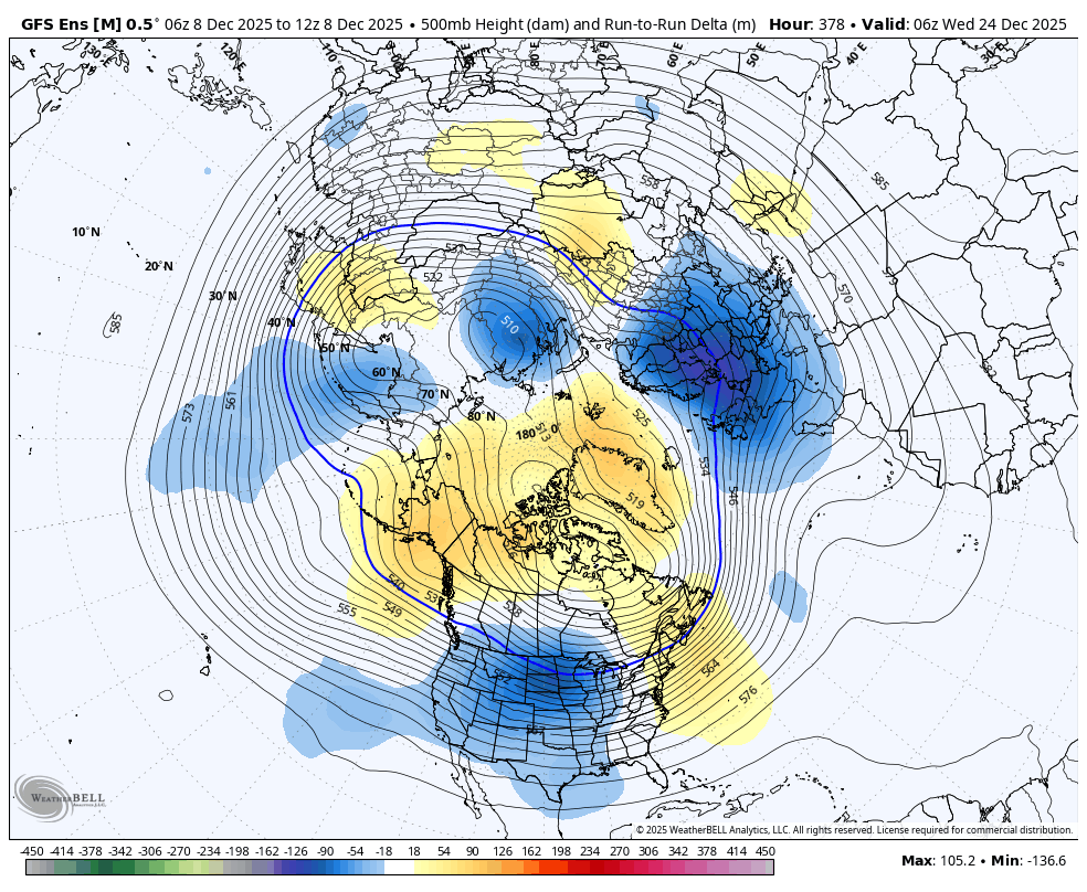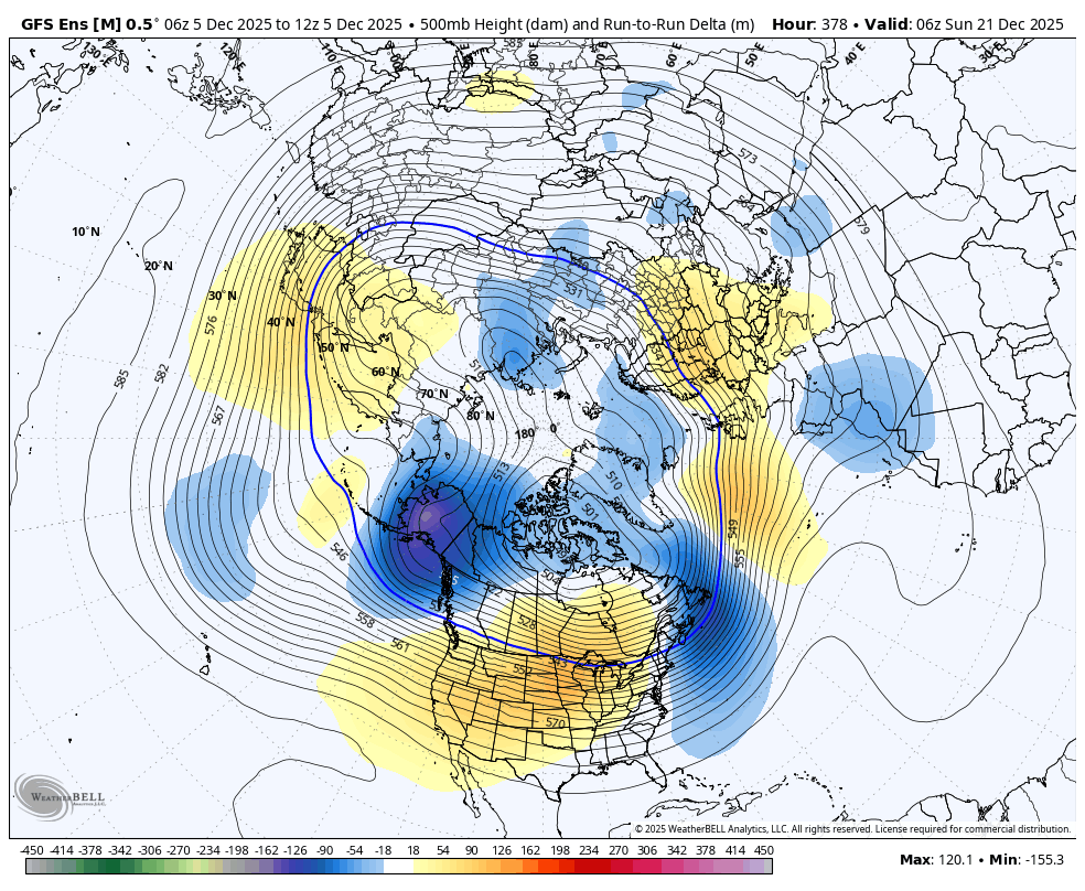 Here was the last map from the EE model that you referred to of the upper level heights with colorized changes from the previous run.