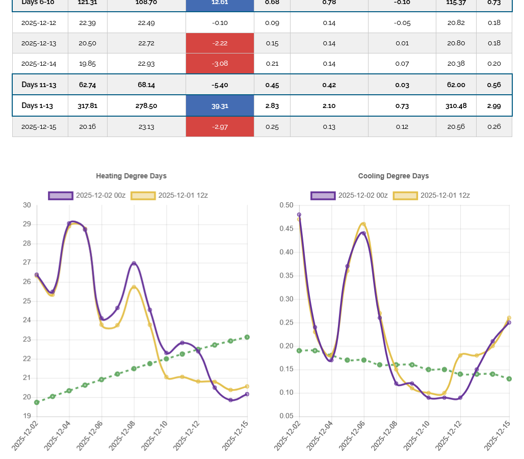 The last 0z European Ensemble model was another -4 HDDs bearish.