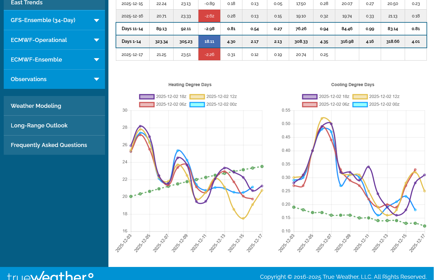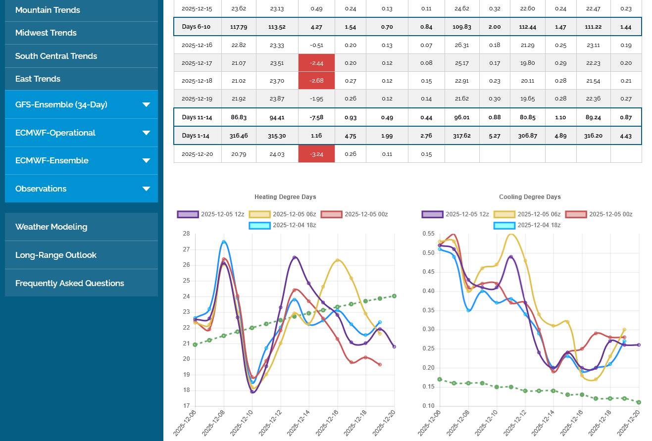 2. The GEFS(American model that has similar individual ensemble members averaged to 1 product) below it shows the same thing. -5 HDDs.