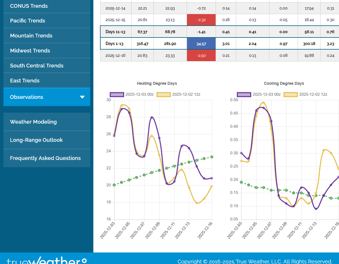 12/13/13: -285 on 253 HDD and included -14 for freeze offs