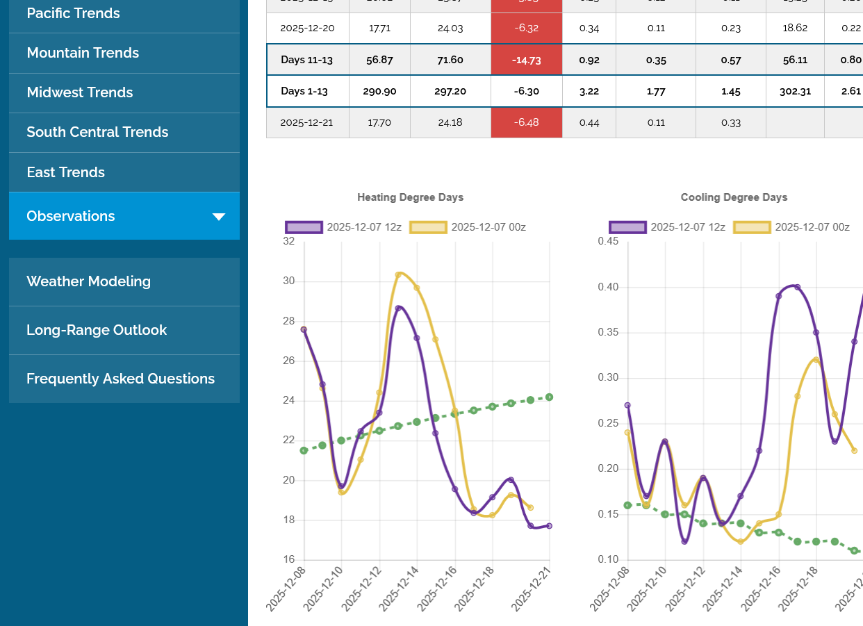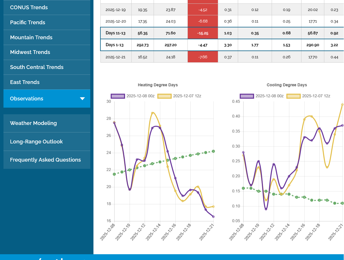 The last 0z EE below was a whopping +16.3 HDDs compared to the previous 12z run. It has the same milder pattern with time but, as has been the case recently, it substantially cooled individual days compared to the run before. The models are doing HORRIBLE, UNDER forecasting the magnitude of this cold pattern.