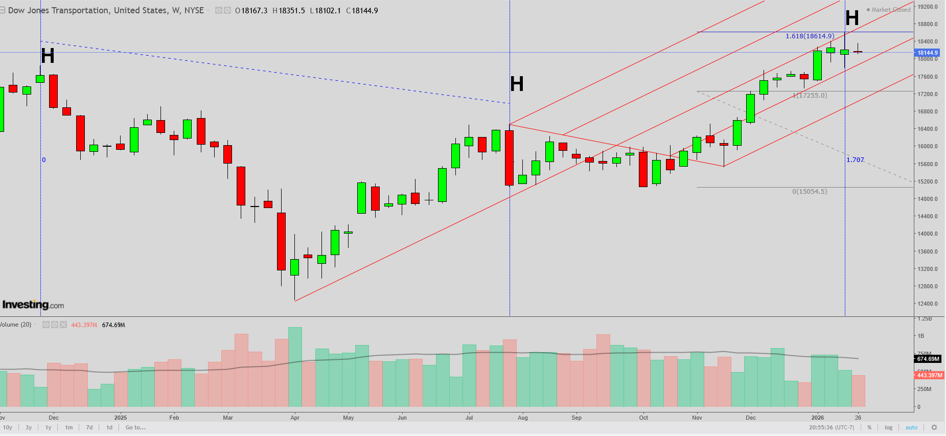 Keeping a close eye on the transports, this is a weekly chart at a critical junction.
