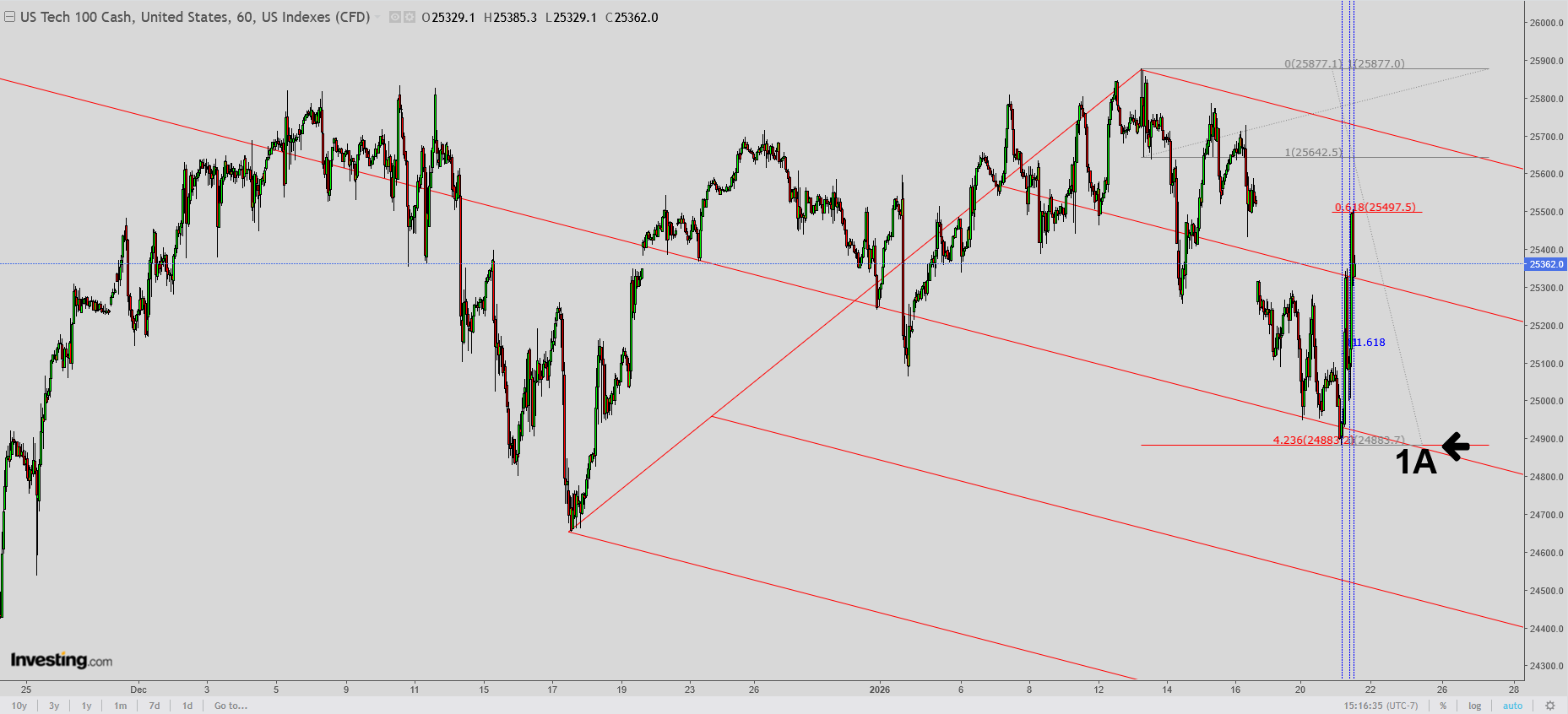 1. 1 month chart: Donald Trump Greenland chaos gap lower of the right with Friday's lows and Sunday's open/highs. Upper, long red line was last weeks low. Lower red line was January's previous low.