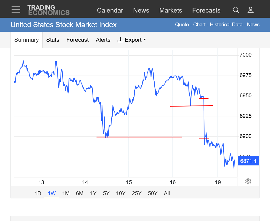 Top red lines: Friday's close and Sunday's open= Greenland chaos gap lower from Donald Trump.