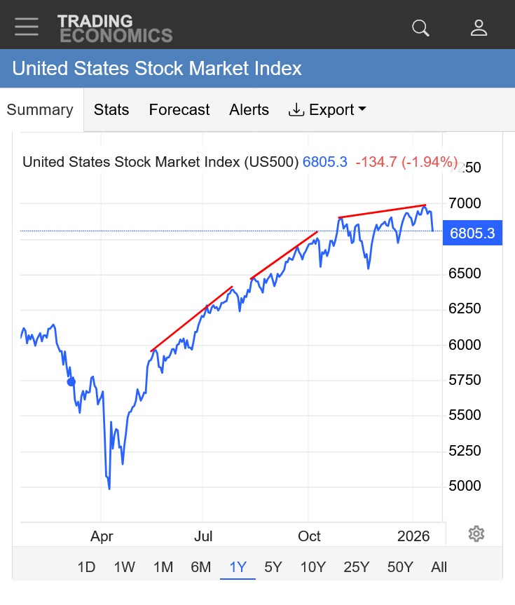 This goes against my thesis that stocks should be ok for the coming 6-12 months with Trump attempting to take over the Fed and implement radically low interest rates.