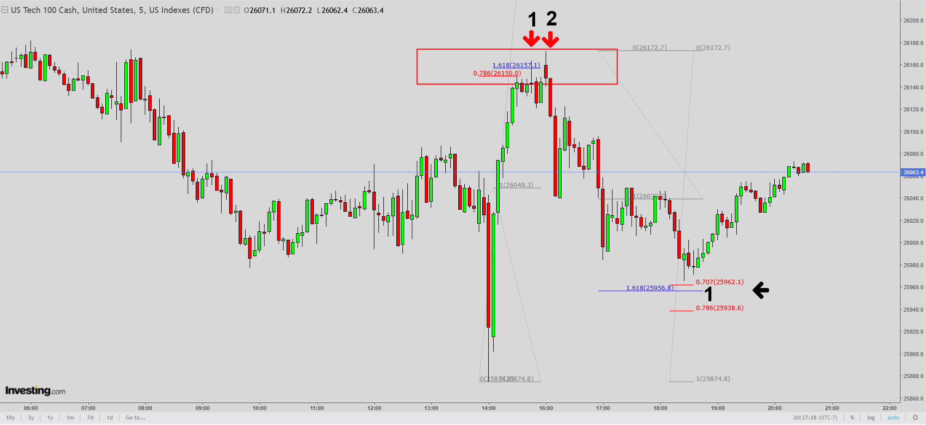 1. The top red line was the low on Friday and the top of the Donald Trump chaos gap lower this evening.