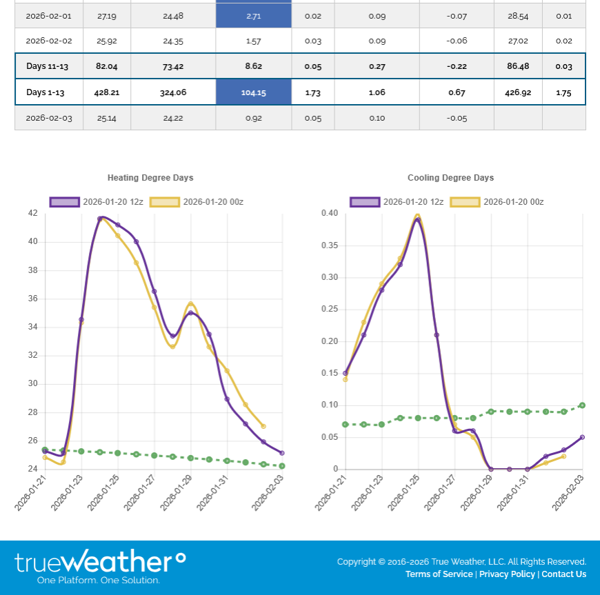 That’s absolutely amazing for 1/31/26 to be at 41.3 HDD, a whopping 17 pop weighted HDD above normal for the US! Do you happen to know the last time there was a day that cold or the last time there was a +17 anomaly?