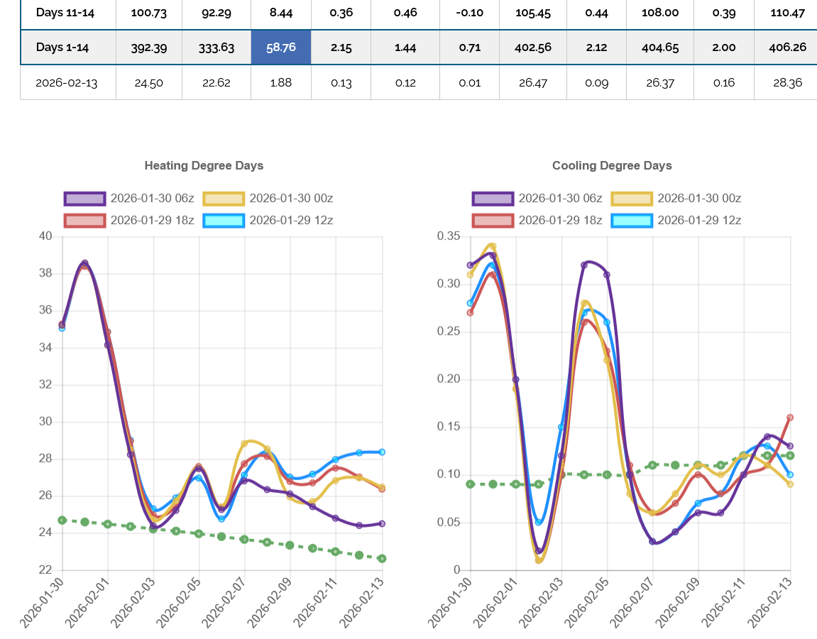 The market is now trading the weather for the entire month of February, which is expected to be very cold. If it's just cold-ish, that will be bearish!. If the cold forecasts intensify and we see another Polar Vortex invasion, that will be bullish.