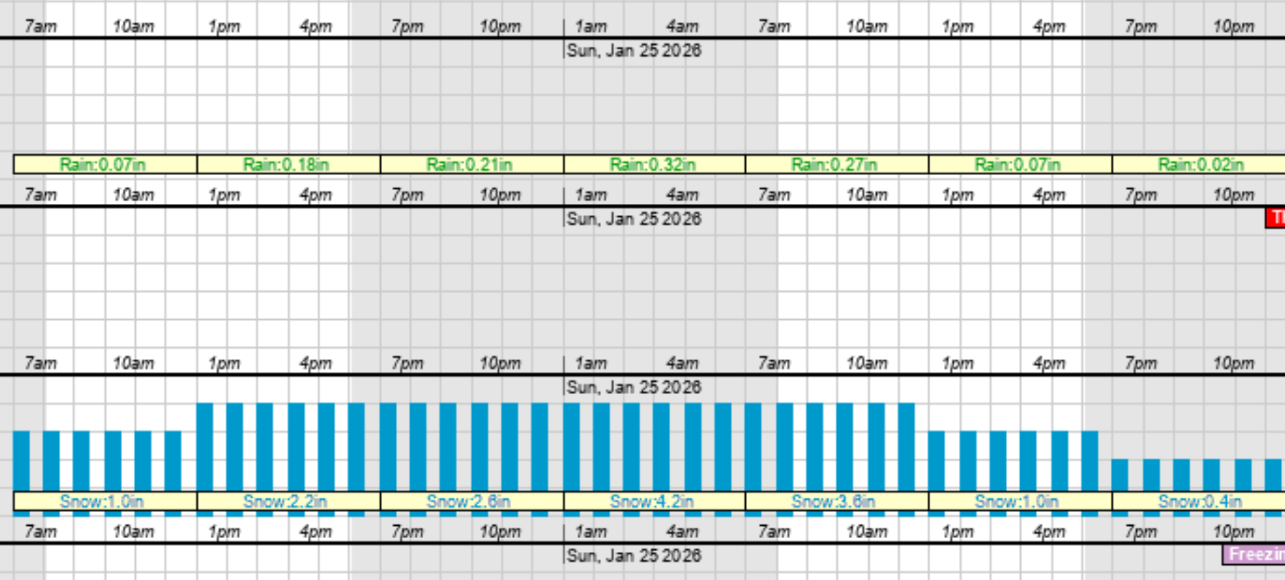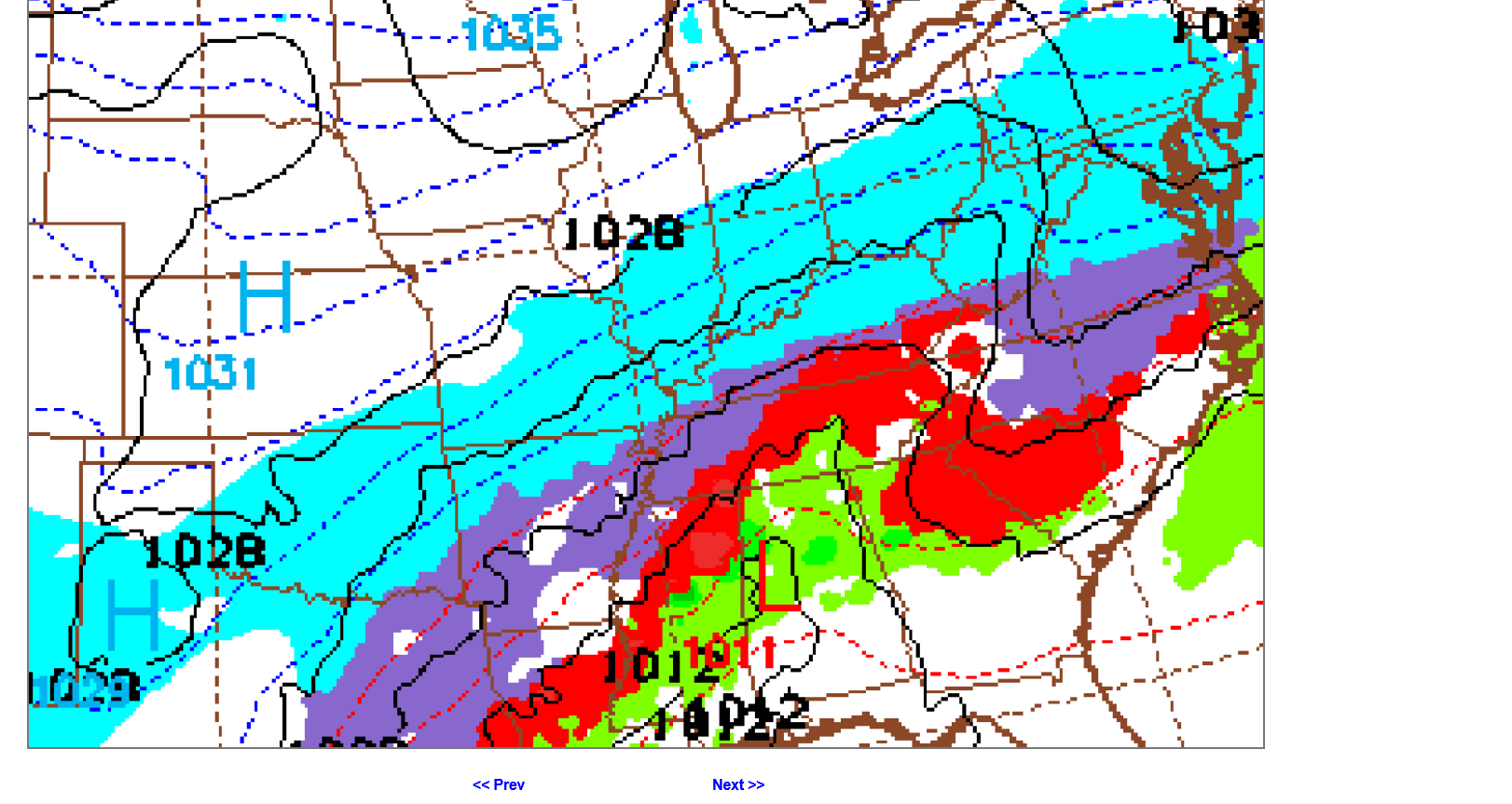 Blue=Snow Purple=Sleet Red=Freezing Rain Green=Rain