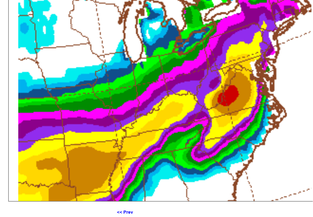 6. That brighter red in Virginia is 30+ inches of snow! The storm will be more organized closer to the East Coast and pulling in Atlantic moisture too, along with higher elevations contributing to additional lifting in that bullseye. This is not a model artifact but instead is a distinct possibility.
