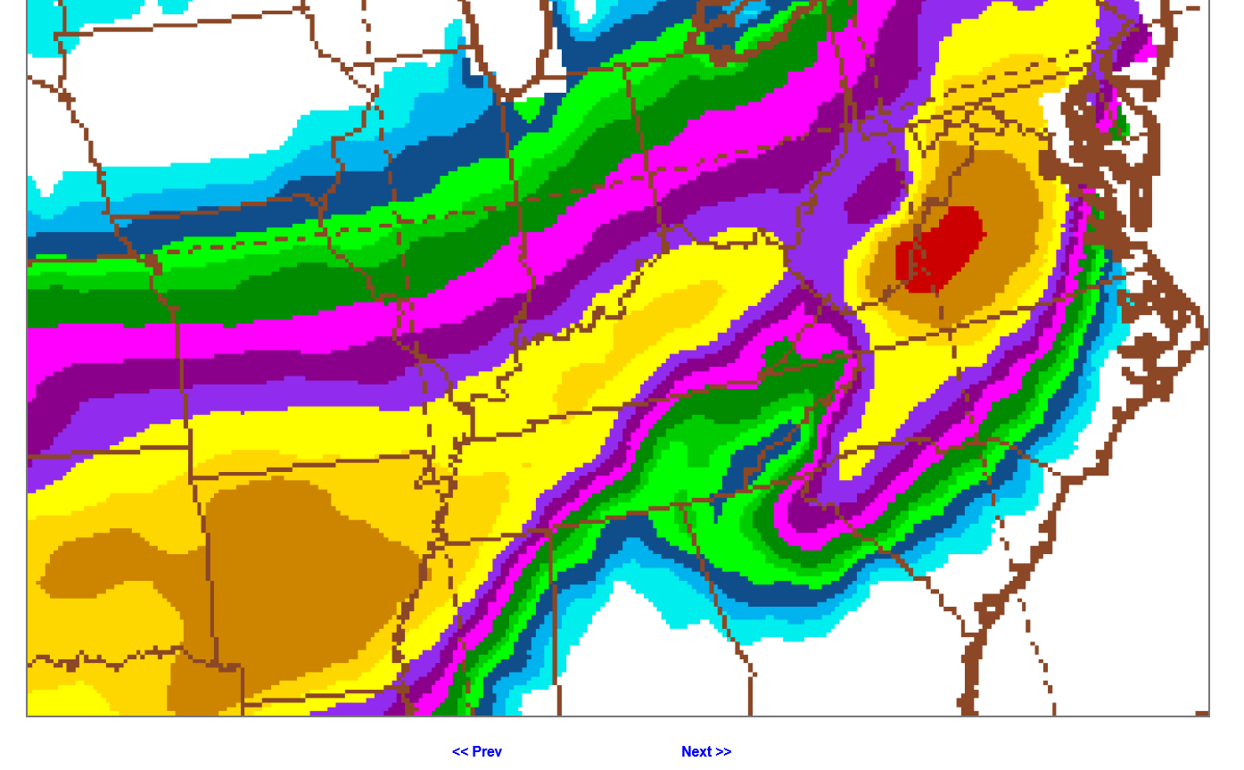 The 12z European operational model has 9 inches for Evansville. The pink color below is 10+Inches.