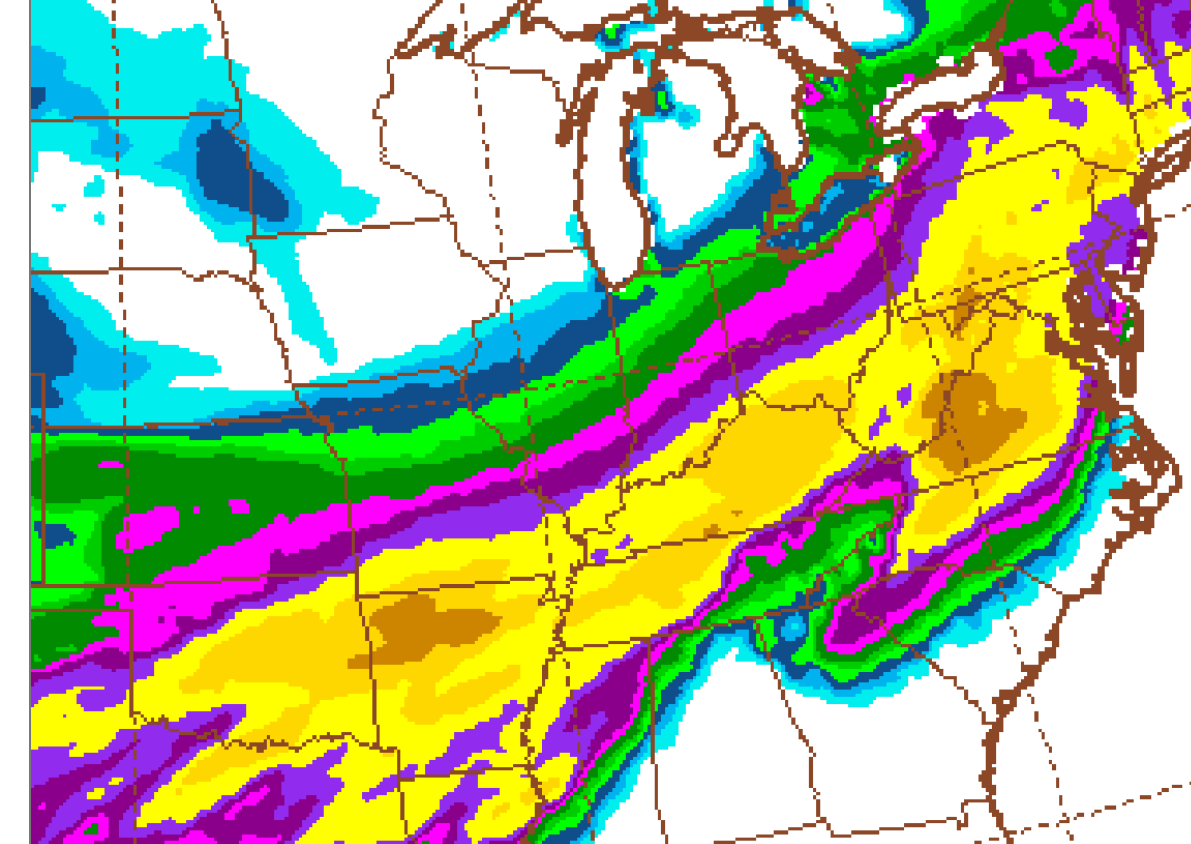 10. The big picture we see below is still capturing the essence of the upcoming event. Despite some inevitable surprises that cause several places to have a few inches more or less than the color predicted or for a shift farther north or south, numerous days of the same but evolving picture and it being on our doorstep give it a 100% chance of happening.