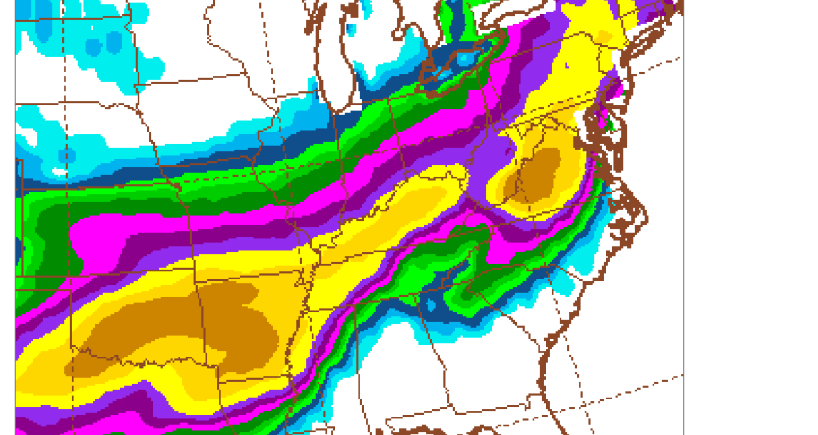 This was the last 6z GEFS. Dark green is 4+ inches(Evansville). Yellow is 12+ inches. Brown is 18+ inches.