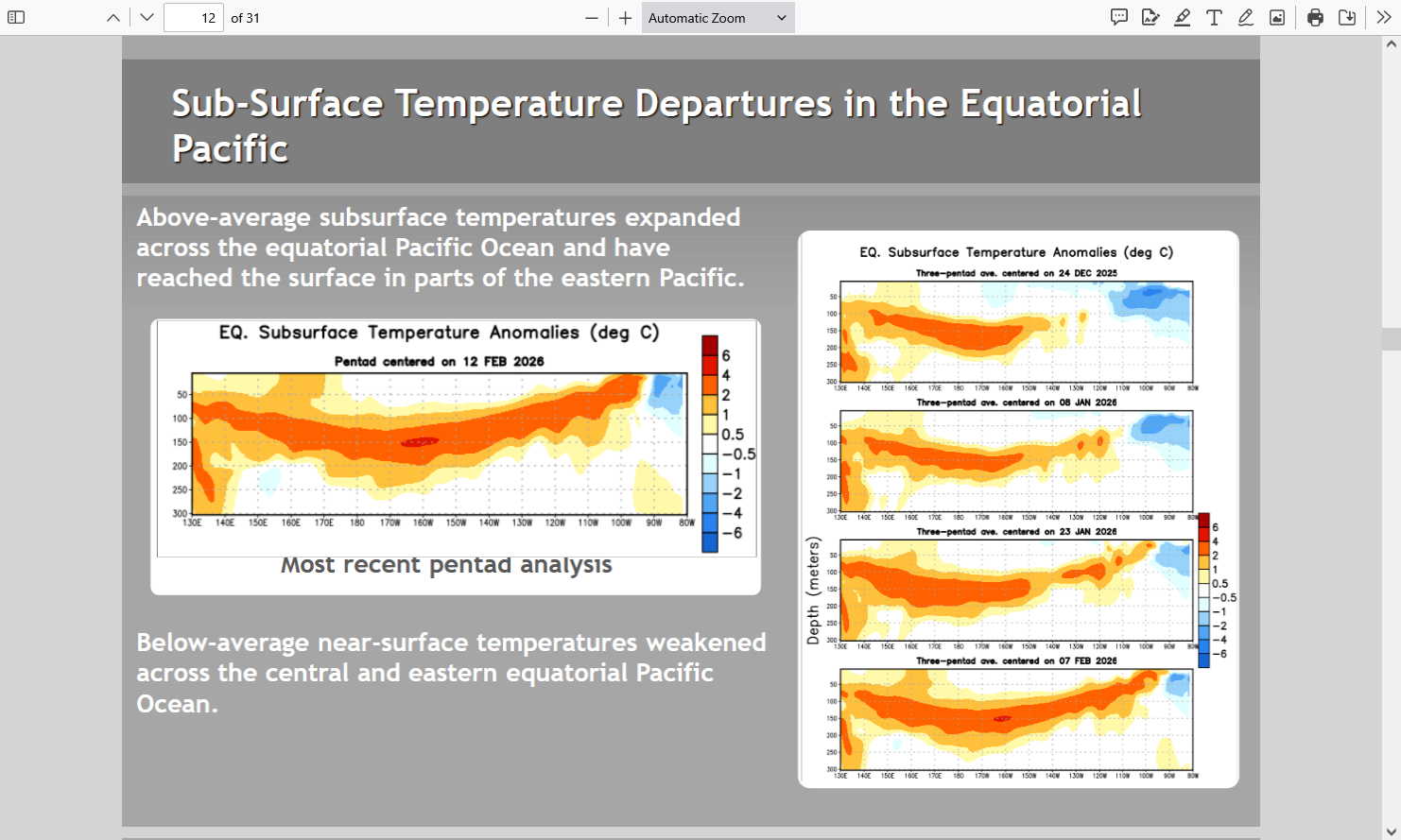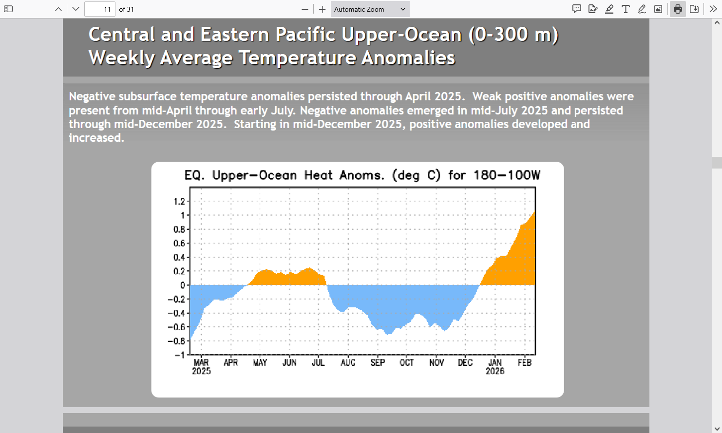The huge weather pattern change here in February 2026 to much warmer because of the Pacific jet stream suddenly taking over (after the cold/dry pattern for previous months from La Nina) is the El Nino's impact already starting from the rapidly warming east/central tropical Pacific.