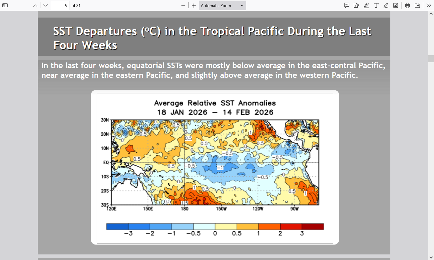 2-17-26: This La Nina has weakened the fastest ever with Pacific water temperatures really warming fast now. We should assume that means El Nino conditions and analogs should be adjusted accordingly. For instance, the current forecast for El Nino by late Summer should be MOVED UP. In fact, considering the lag time issue mentioned above, I would move up the El Nino impact to THIS SPRING with regards to real world, empirical data based weather condition analogs.