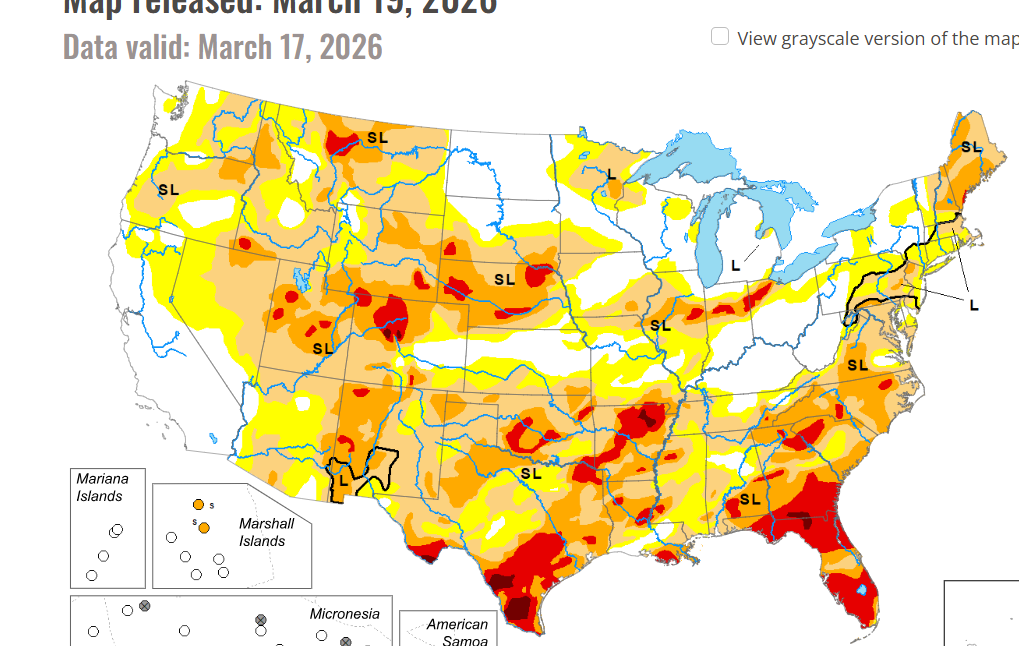 Mud time in New England, despite the long term drought. Not so much in the South-