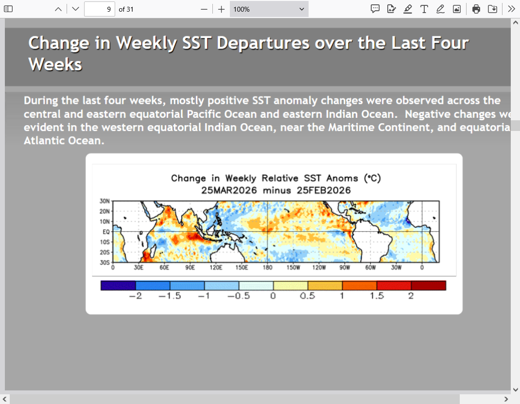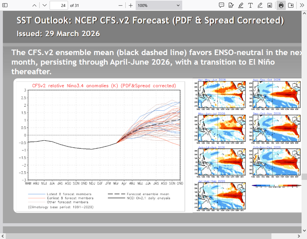 This is my forecast right now, in fact, El Nino by AMJ is possible.
