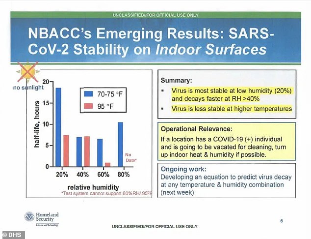 This table clearly shows that the virus will stay active on surfaces and in the air at temps 72 degrees with Low humidity -- ideal a/c c -- for 18 hours !!!!