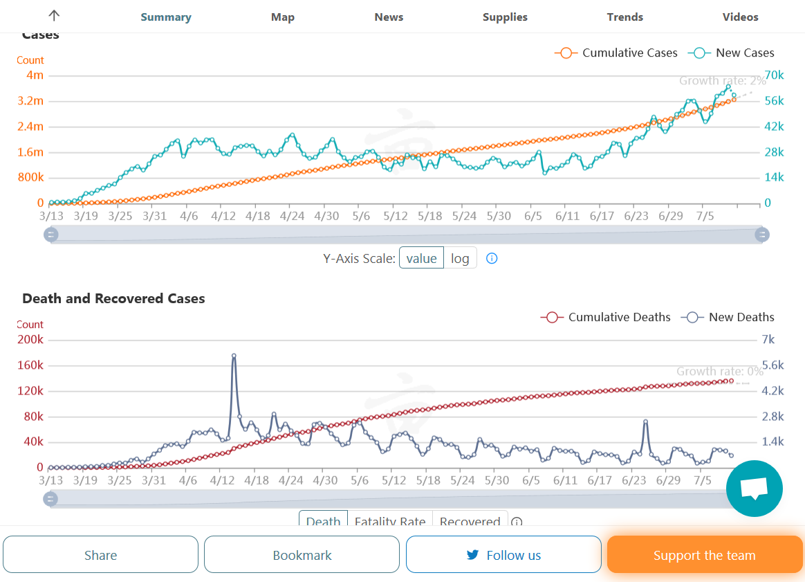 I get that he has done a horrible job in not pushing masks more(though again, each state and community makes their own rules) and his OK rally was very, very bad judgment and that he WANTS to re open to get the economy back on track, which is happening but you are blaming decisions that he had nothing to do with on him.